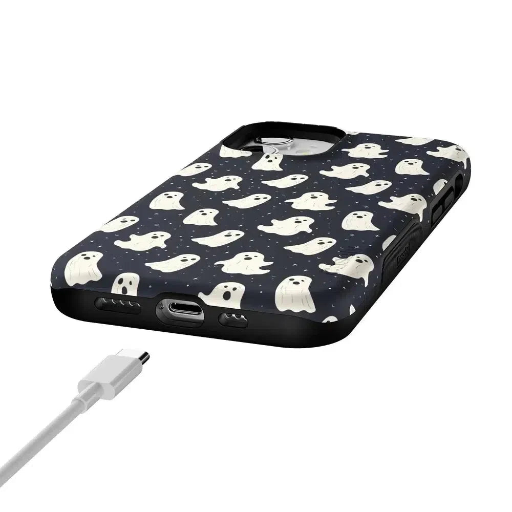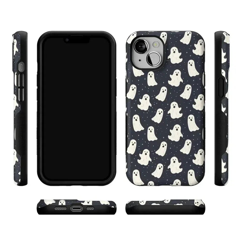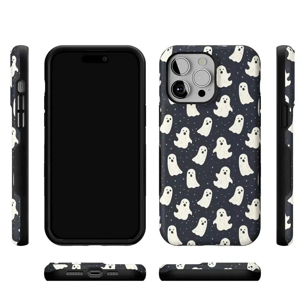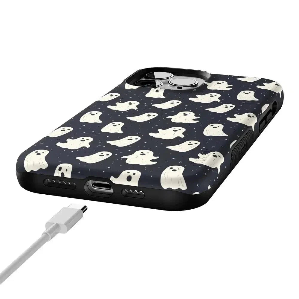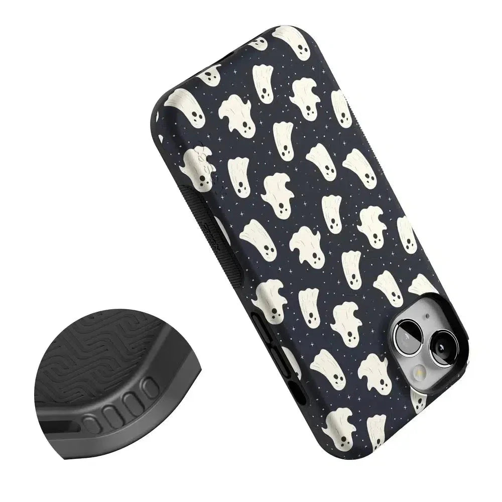 another style within 30 days of receiving your order.Get into the spooky spirit with the All Boos No Bite Friendly Ghost Case, part of our Halloween Collection. This adorable phone case features a playful design of cheerful ghosts that are more sweet than scary. Built with dual-layer protection, it shields your device from everyday bumps and drops while maintaining a slim and sleek profile. Perfect for those who love Halloween but prefer their ghosts friendly, this case adds a fun, festive touch to your device.