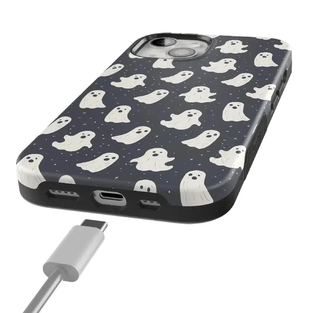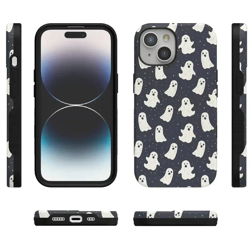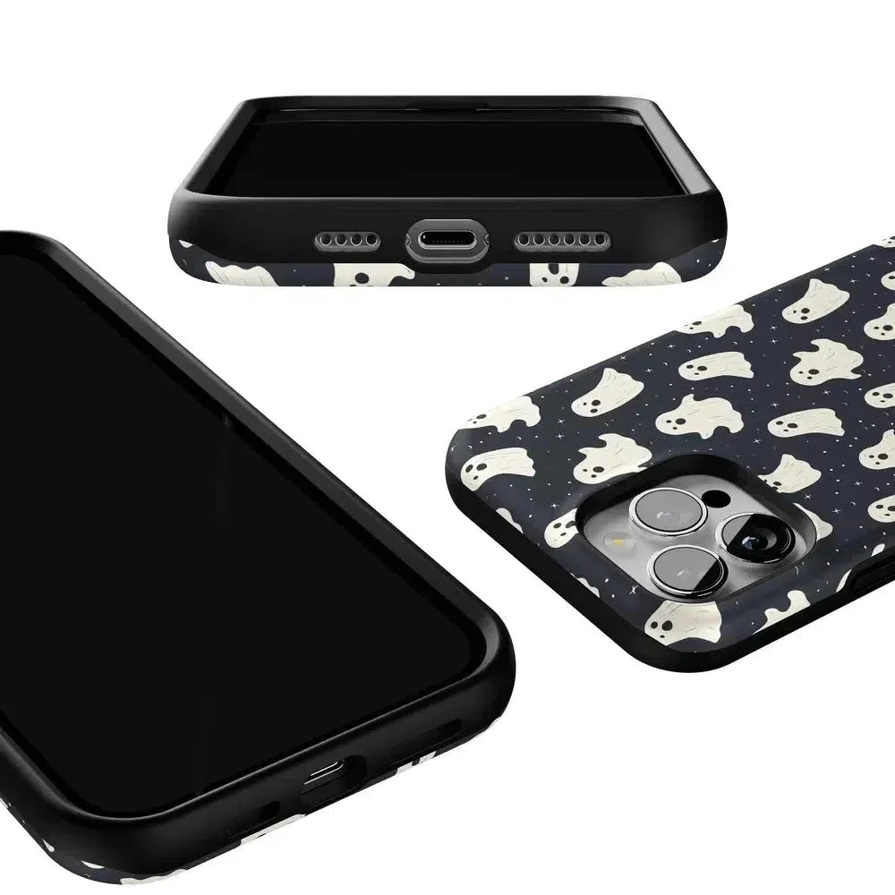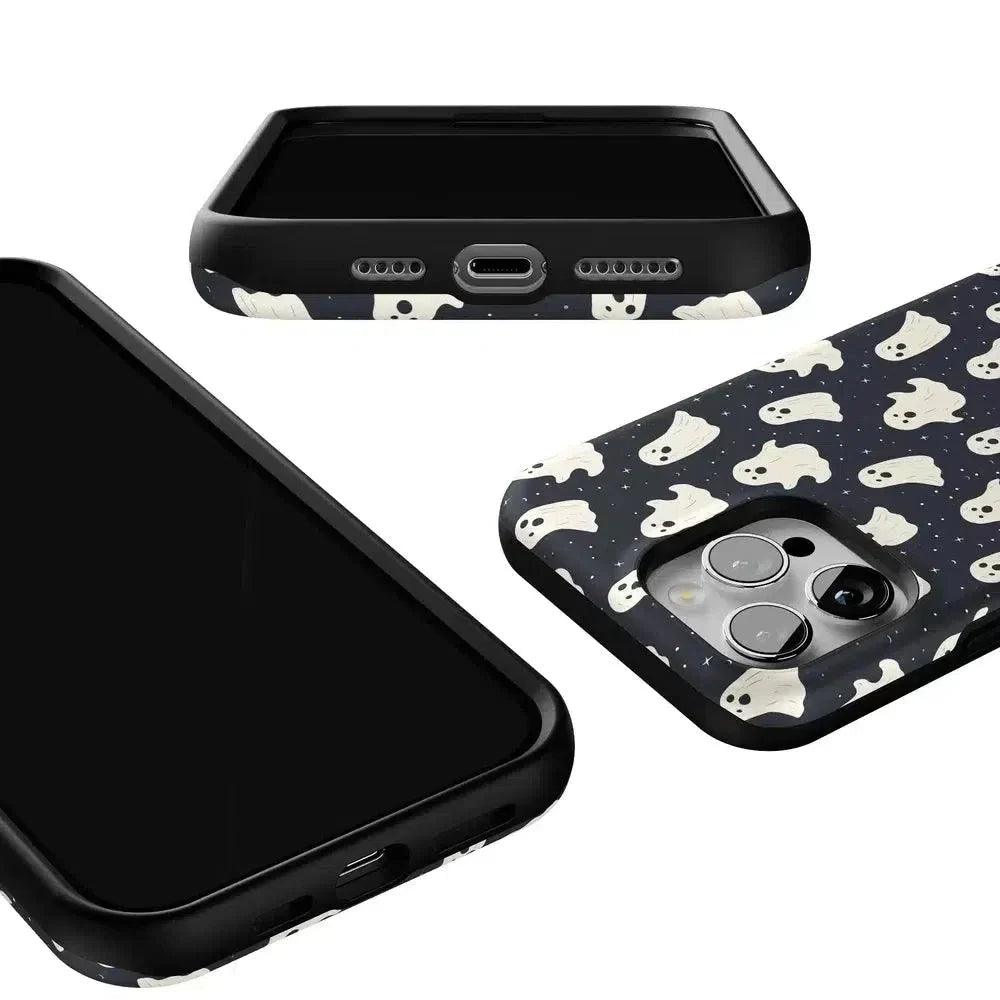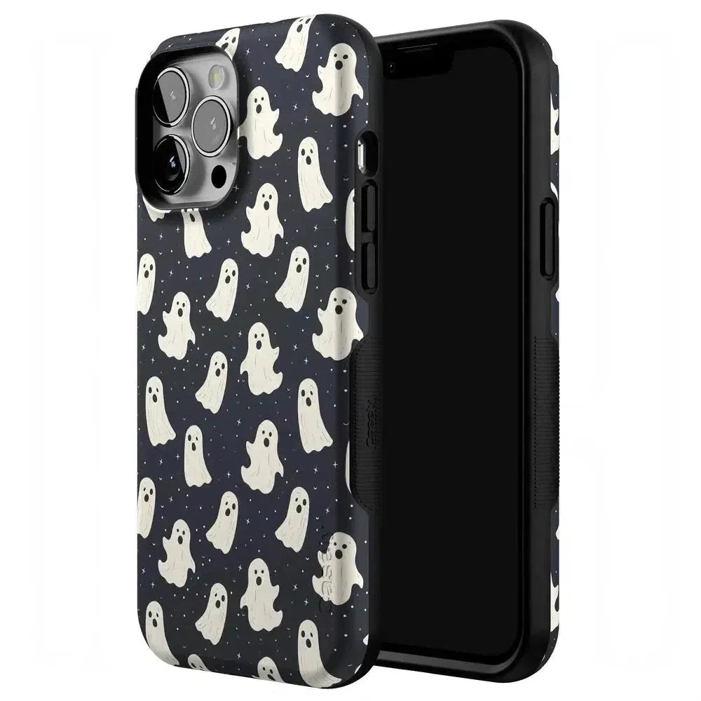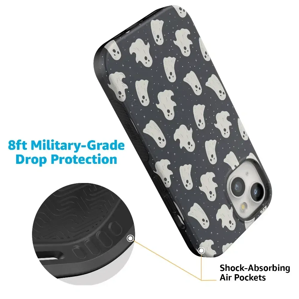 another style within 30 days of receiving your order.Get into the spooky spirit with the All Boos No Bite Friendly Ghost Case, part of our Halloween Collection. This adorable phone case features a playful design of cheerful ghosts that are more sweet than scary. Built with dual-layer protection, it shields your device from everyday bumps and drops while maintaining a slim and sleek profile. Perfect for those who love Halloween but prefer their ghosts friendly, this case adds a fun, festive touch to your device.