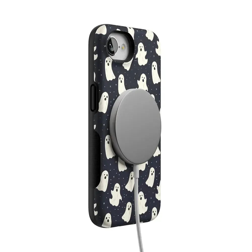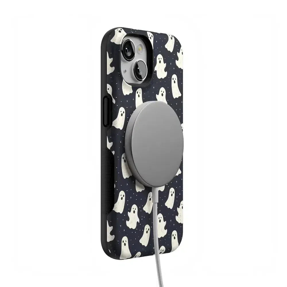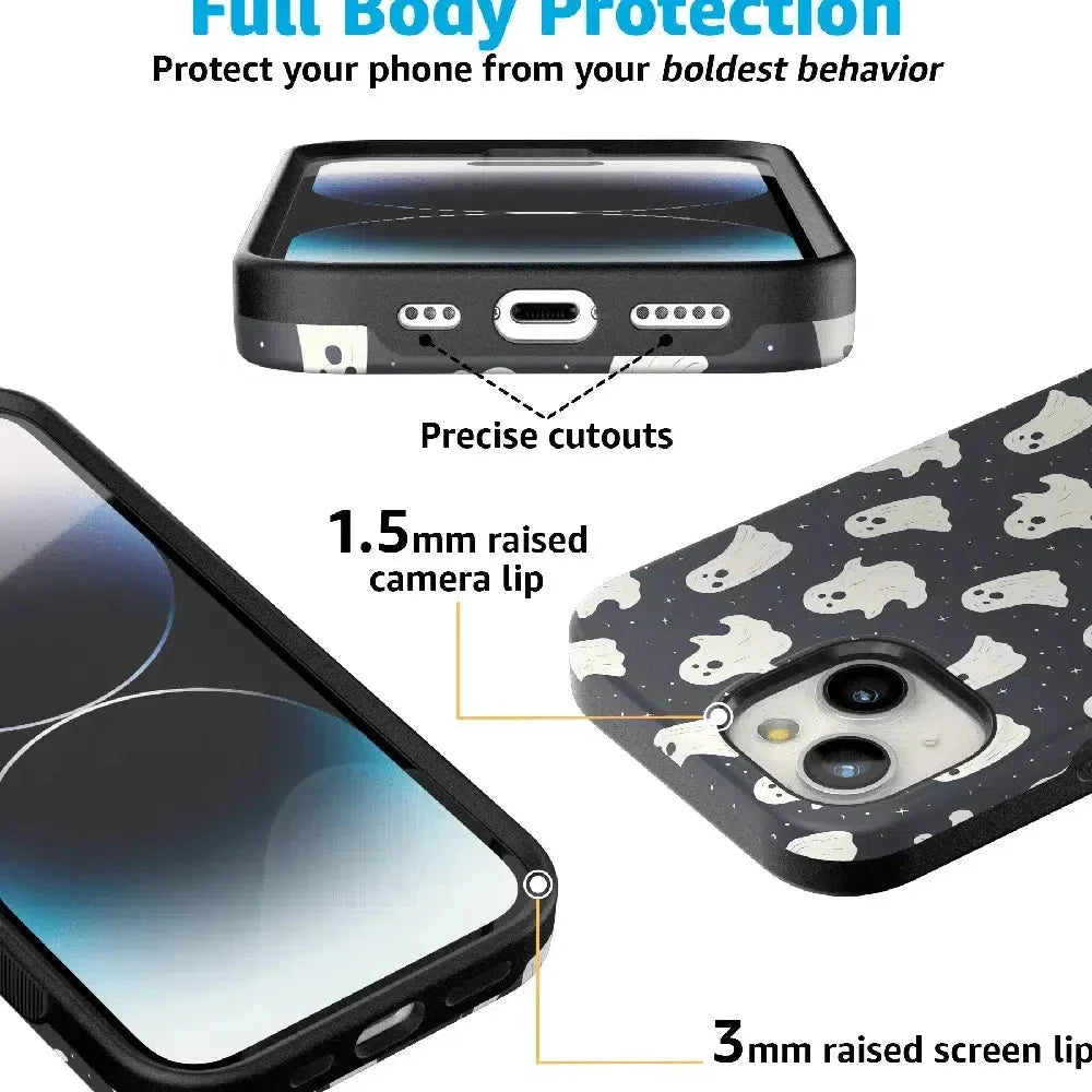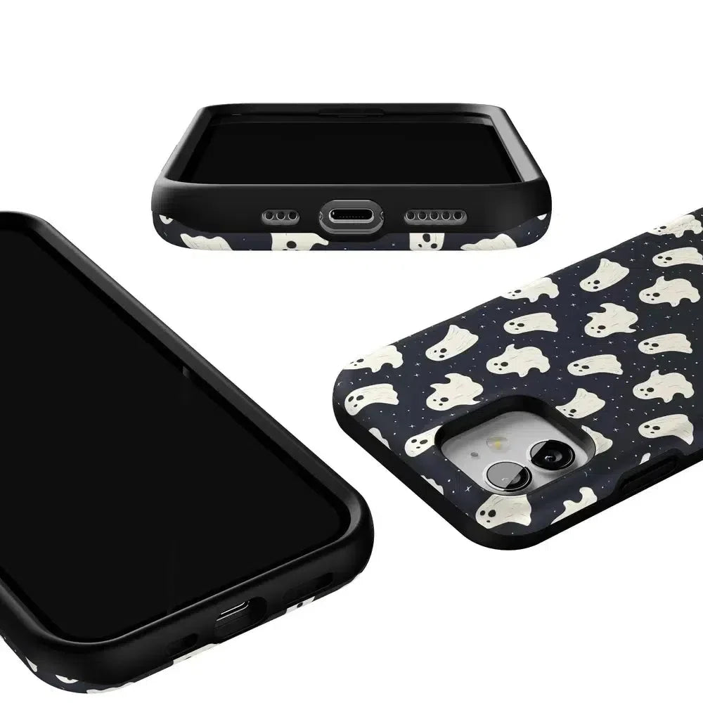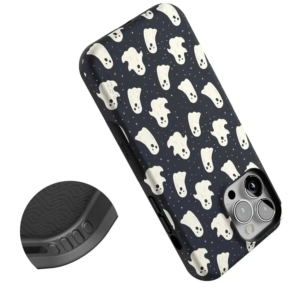 another style within 30 days of receiving your order.Get into the spooky spirit with the All Boos No Bite Friendly Ghost Case, part of our Halloween Collection. This adorable phone case features a playful design of cheerful ghosts that are more sweet than scary. Built with dual-layer protection, it shields your device from everyday bumps and drops while maintaining a slim and sleek profile. Perfect for those who love Halloween but prefer their ghosts friendly, this case adds a fun, festive touch to your device.