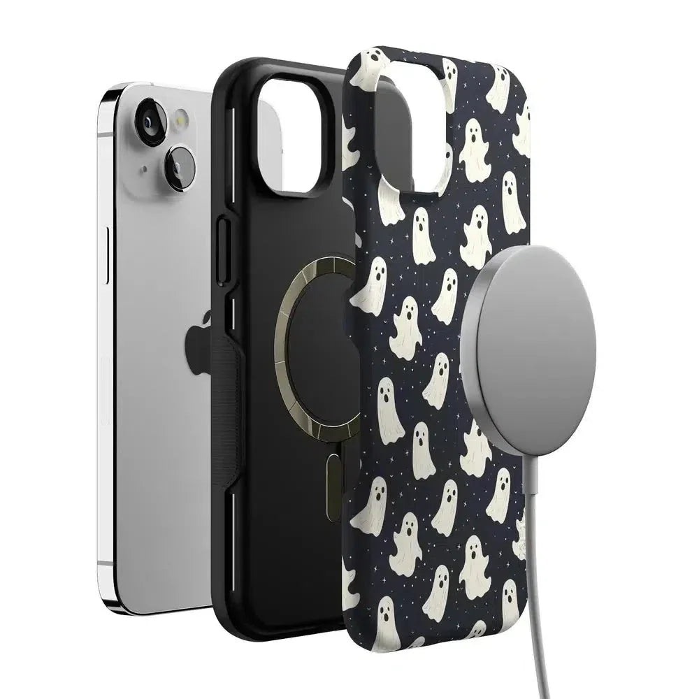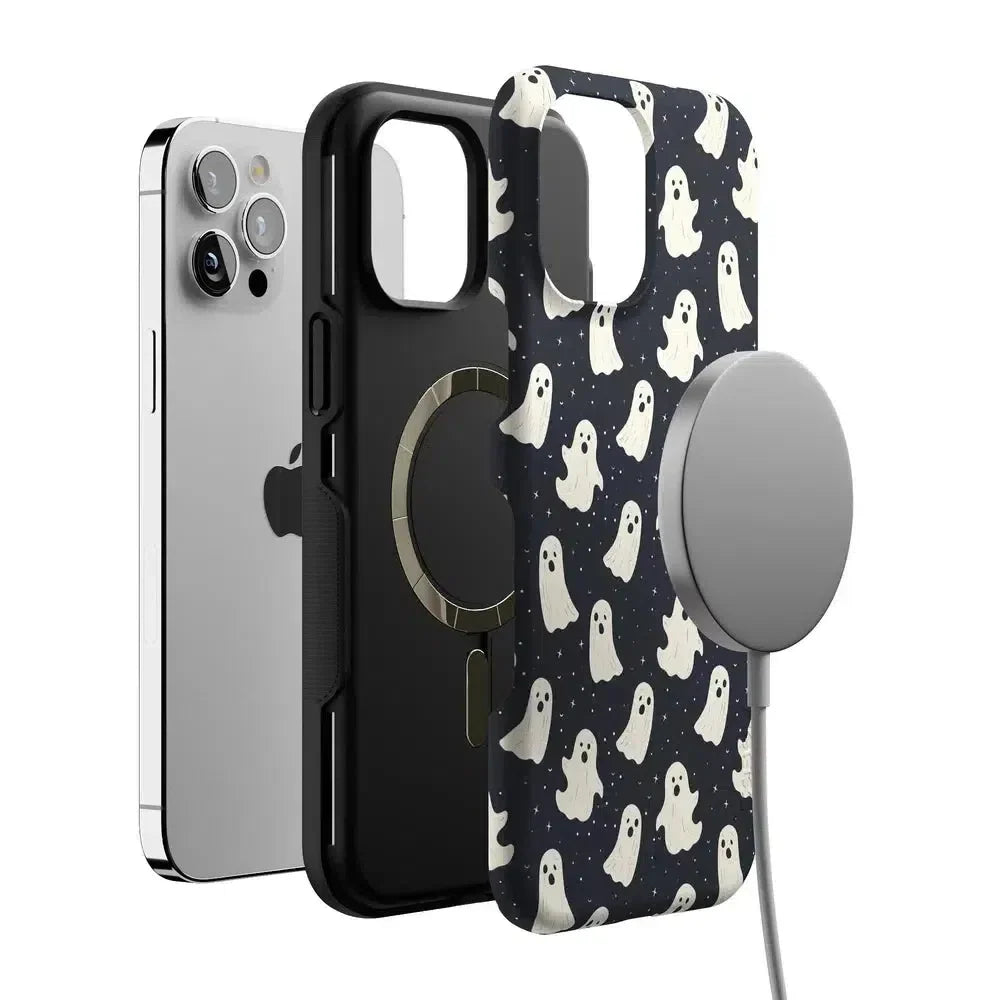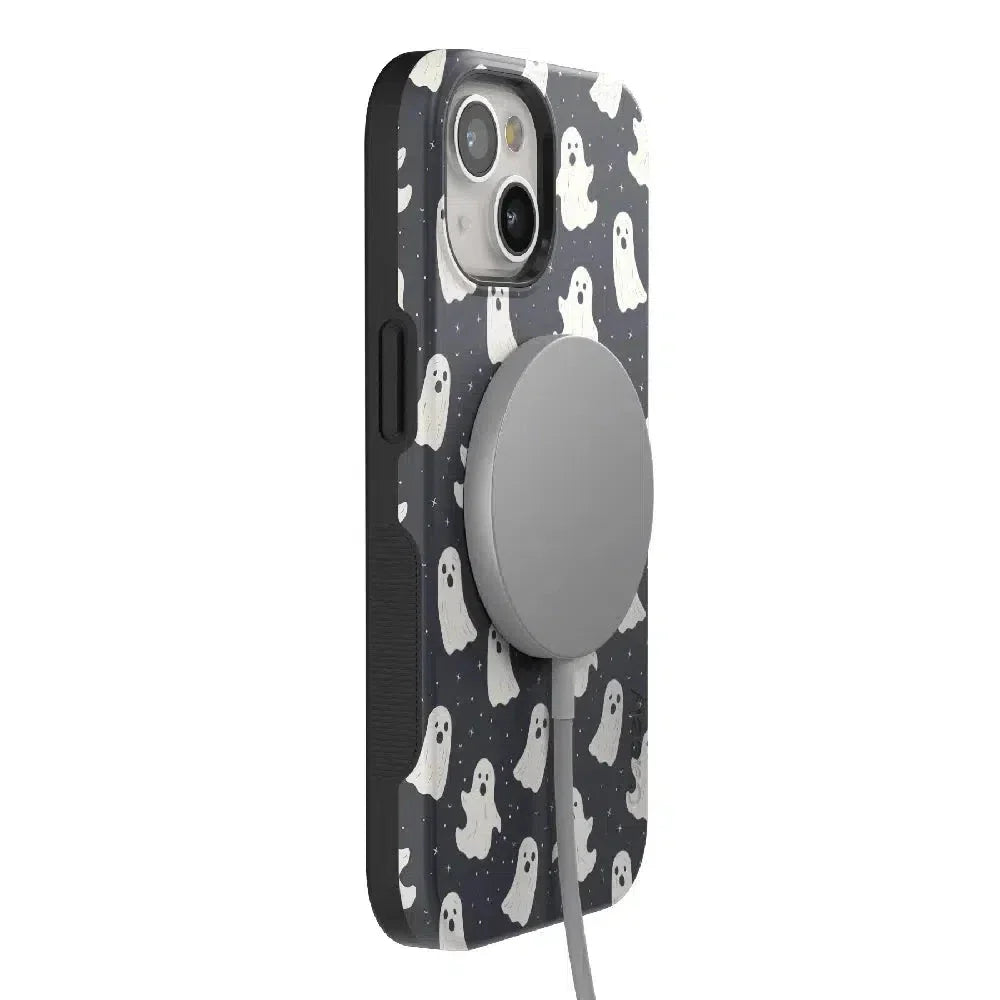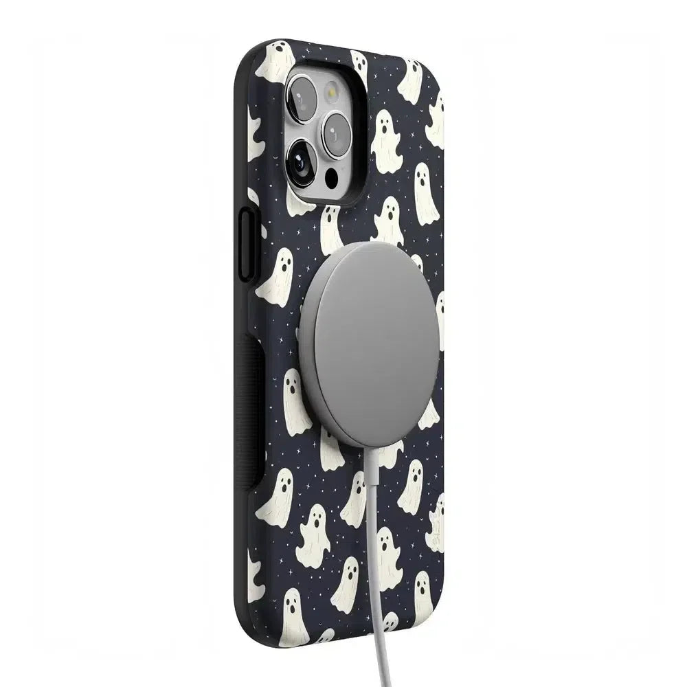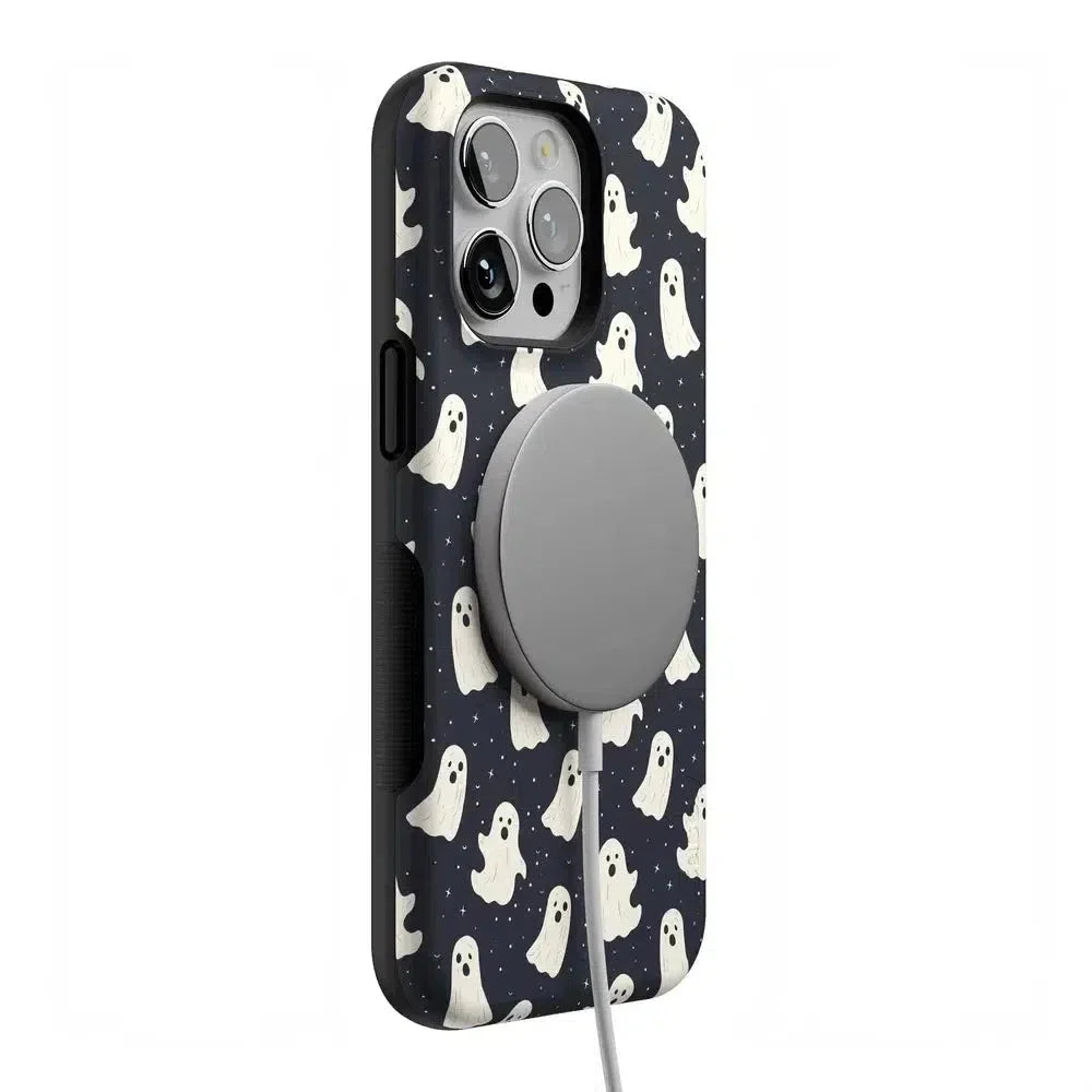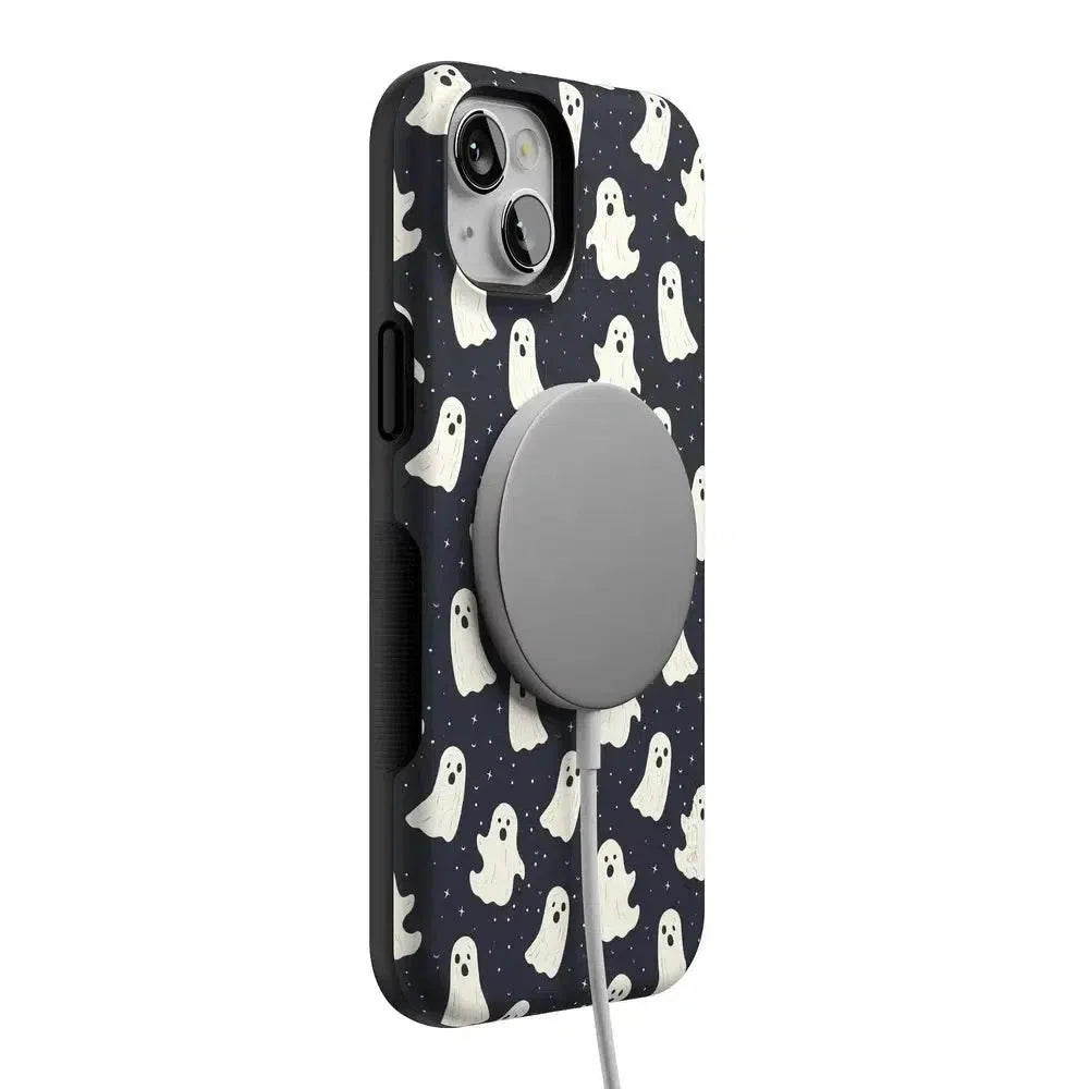 another style within 30 days of receiving your order.Get into the spooky spirit with the All Boos No Bite Friendly Ghost Case, part of our Halloween Collection. This adorable phone case features a playful design of cheerful ghosts that are more sweet than scary. Built with dual-layer protection, it shields your device from everyday bumps and drops while maintaining a slim and sleek profile. Perfect for those who love Halloween but prefer their ghosts friendly, this case adds a fun, festive touch to your device.