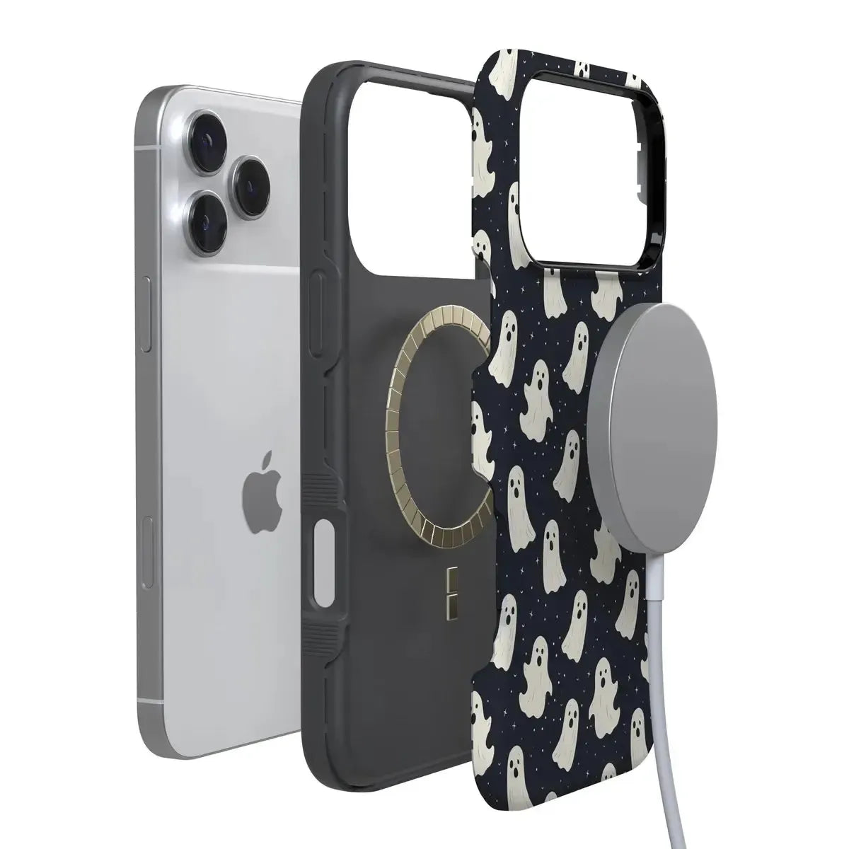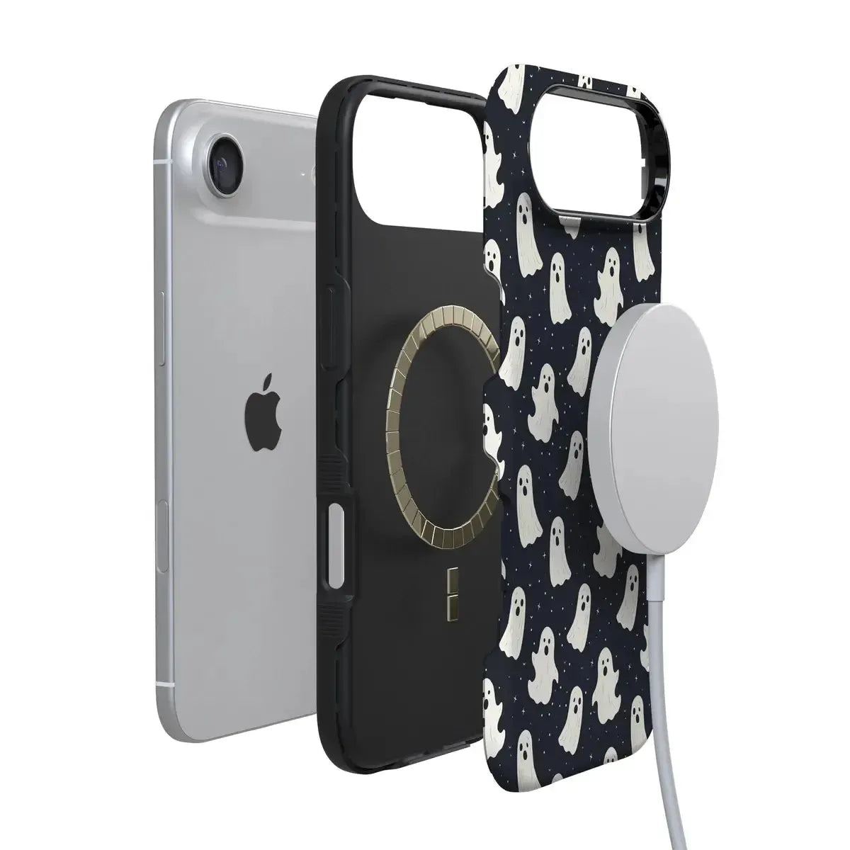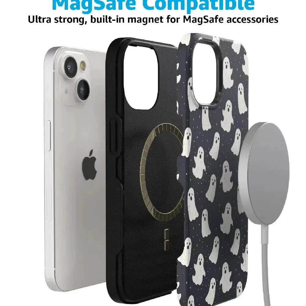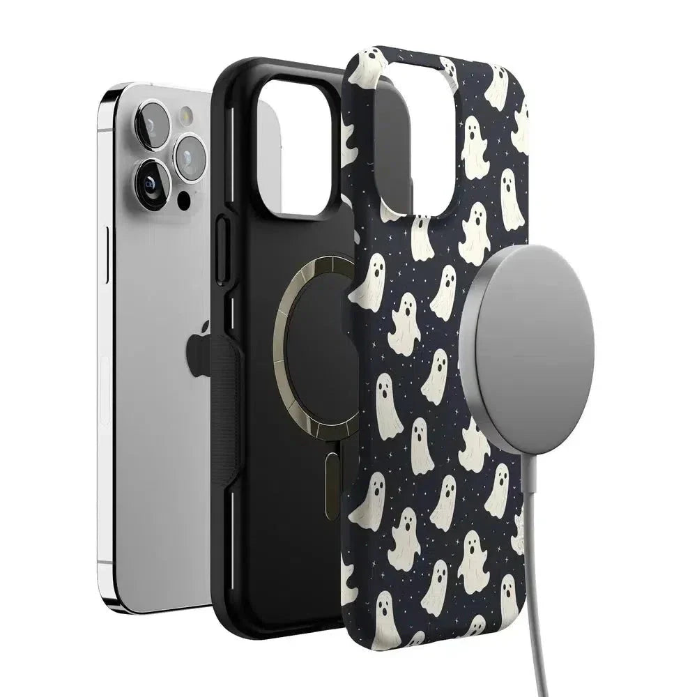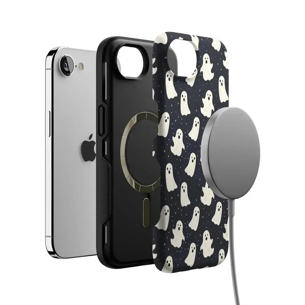 another style within 30 days of receiving your order.Get into the spooky spirit with the All Boos No Bite Friendly Ghost Case, part of our Halloween Collection. This adorable phone case features a playful design of cheerful ghosts that are more sweet than scary. Built with dual-layer protection, it shields your device from everyday bumps and drops while maintaining a slim and sleek profile. Perfect for those who love Halloween but prefer their ghosts friendly, this case adds a fun, festive touch to your device.