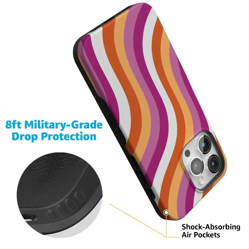 Celebrate love in all its forms with the All for Love Pride Case, featuring a beautiful wave design in the vibrant colors of the lesbian flag. This eye-catching case not only showcases your pride but also provides robust protection for your phone.