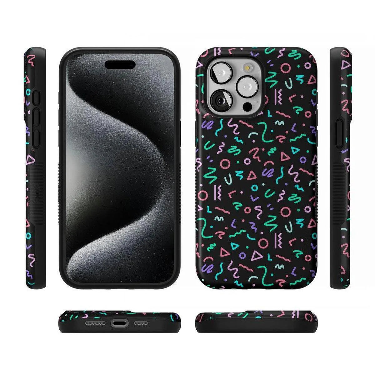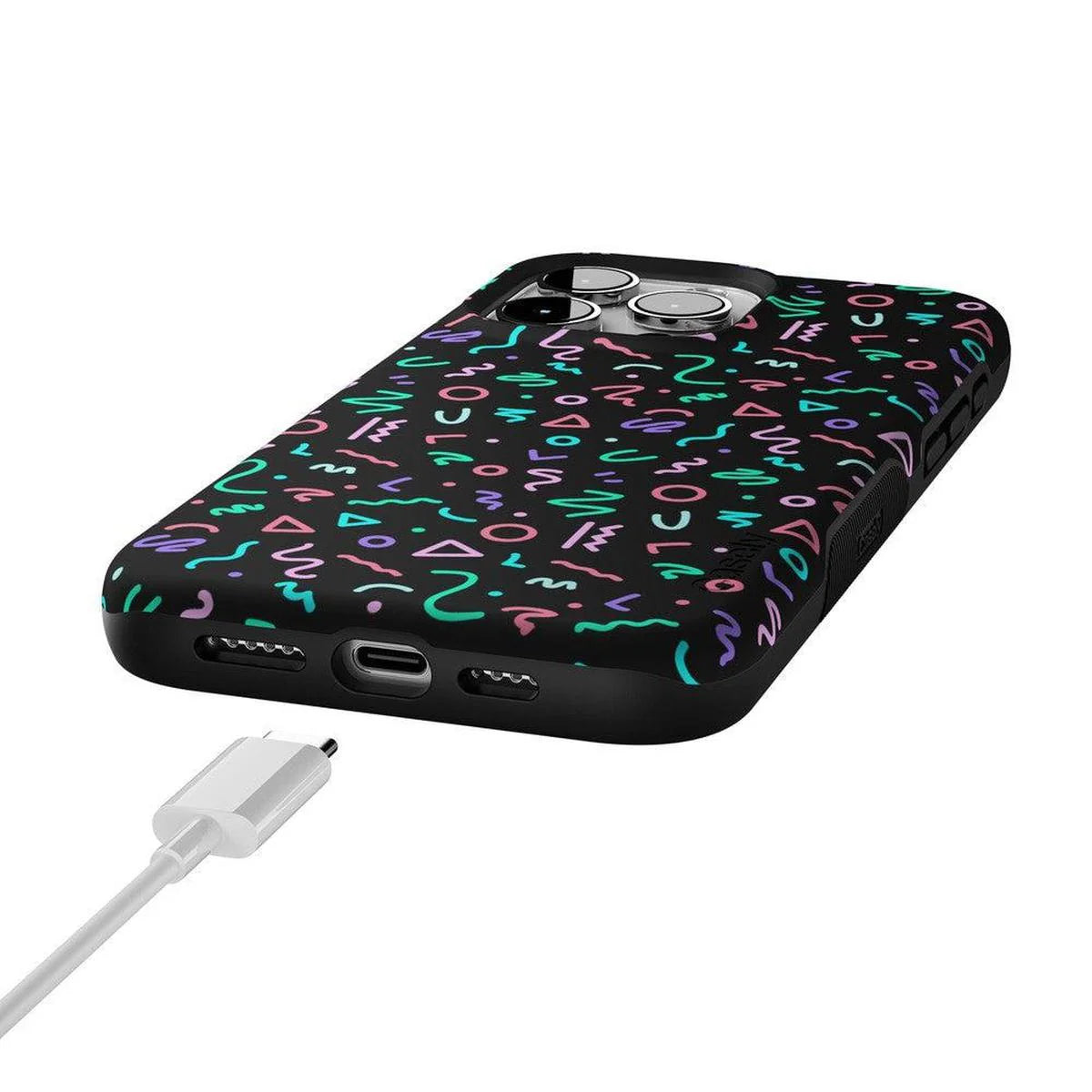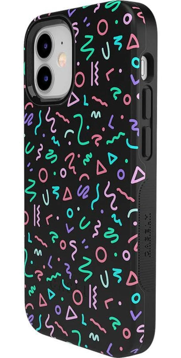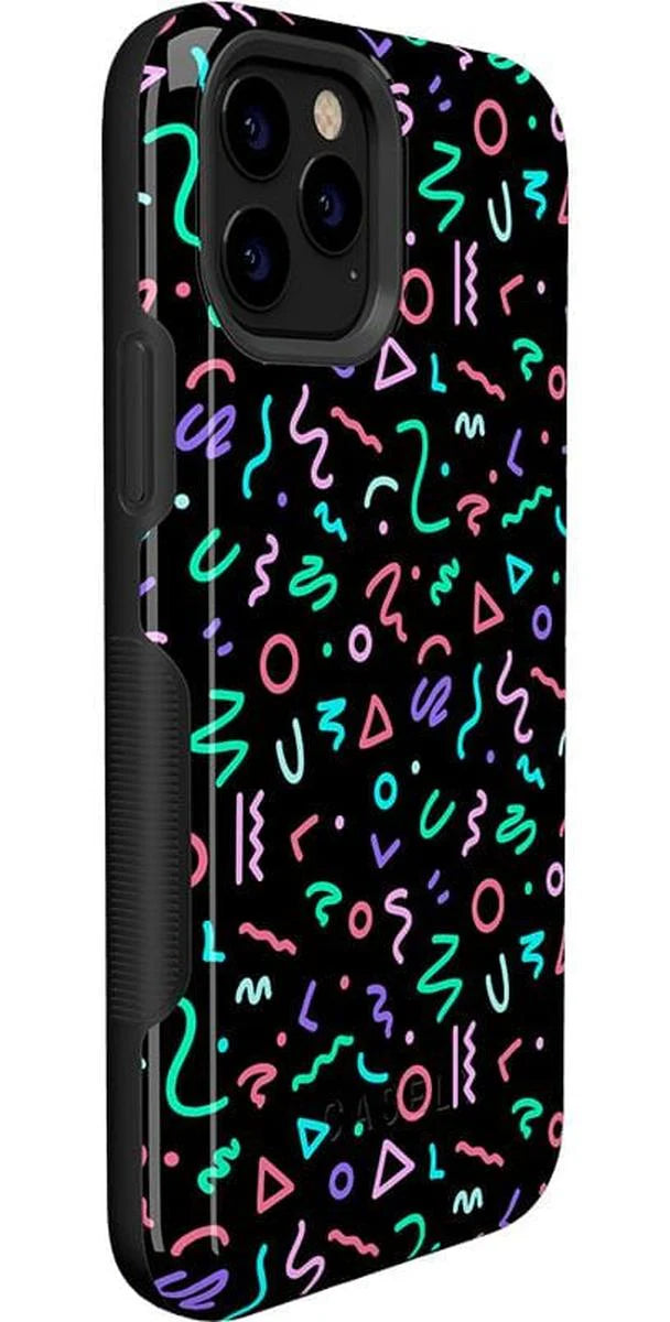 another style within 30 days of receiving your order.Are you a fan of retro styles? If so, you will love this Always Vibing case. With a design that gives off major 90’s vibes, you’ll inspire some nostalgia when people catch sight of this fun, abstract pattern. The black background and bright neon colors will match any of your accessories and show off your fun personality. This eye-catching product is not just for looks either. With custom sizes for all models of iPhones and Samsung devices, this case will keep your screen and buttons safe in any accident. Why have a boring phone when you can have a trendy one? Show off your fly side with this stand out case today!