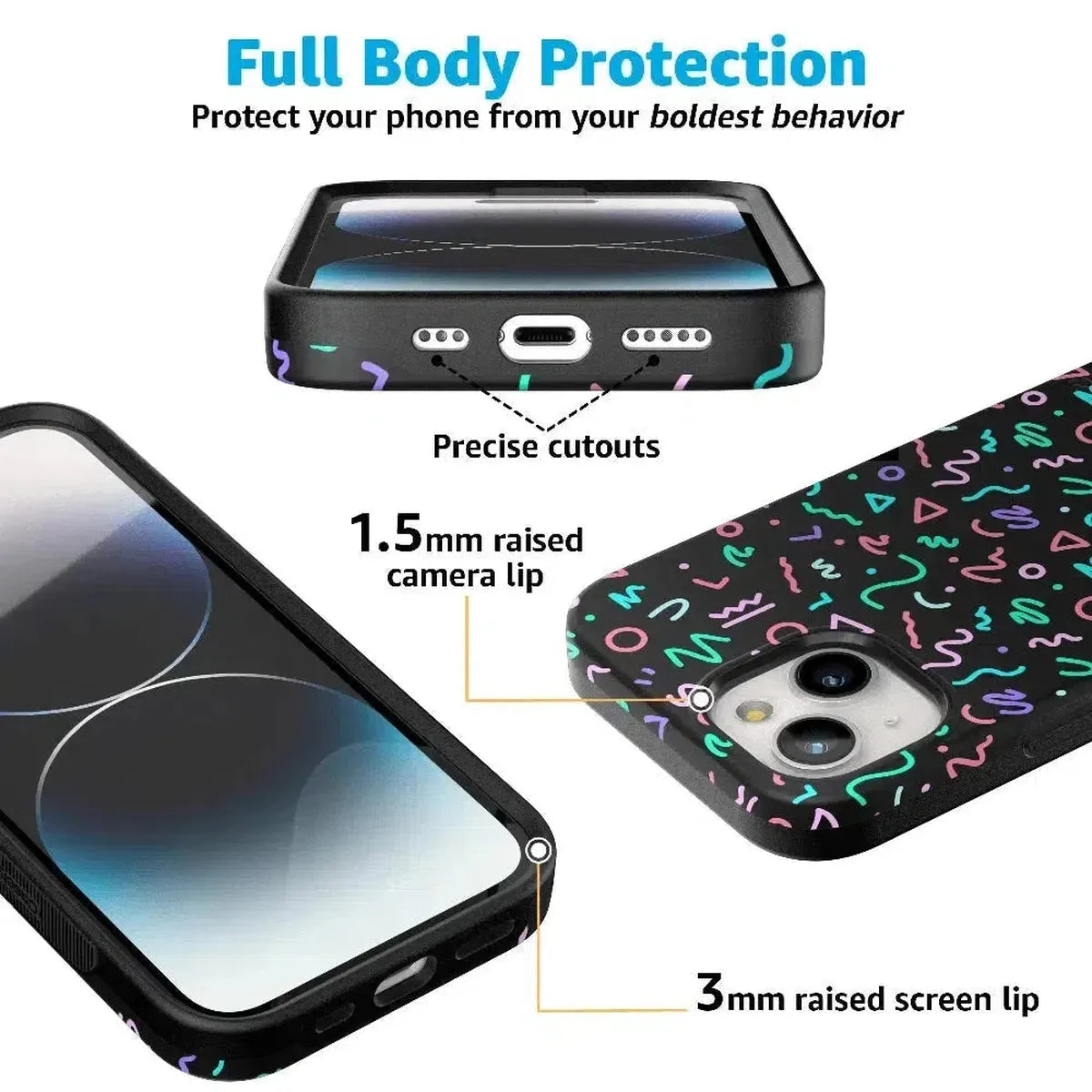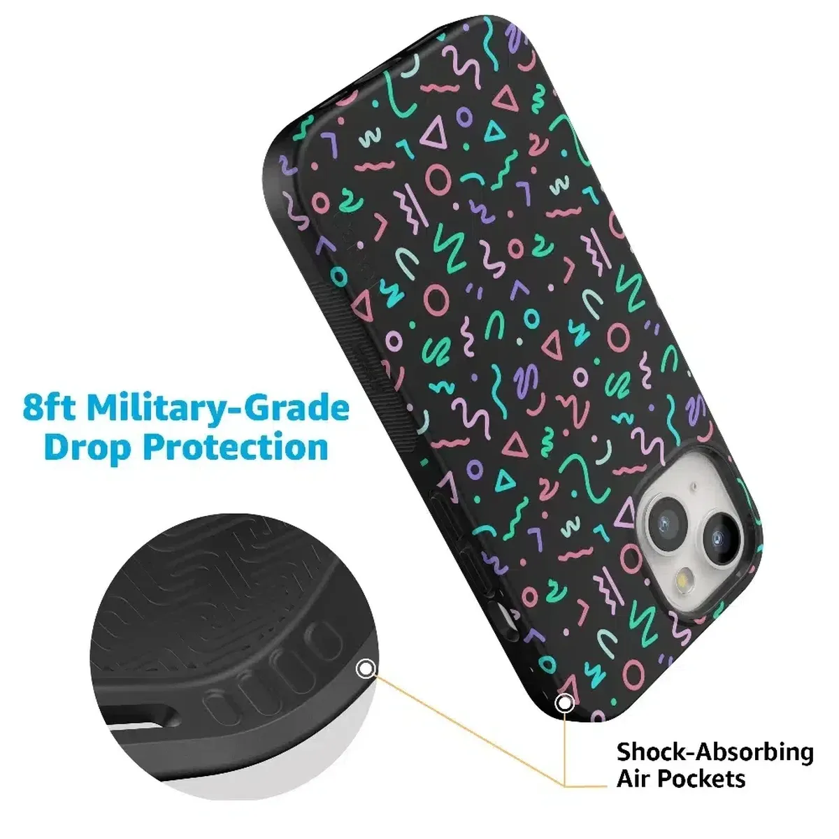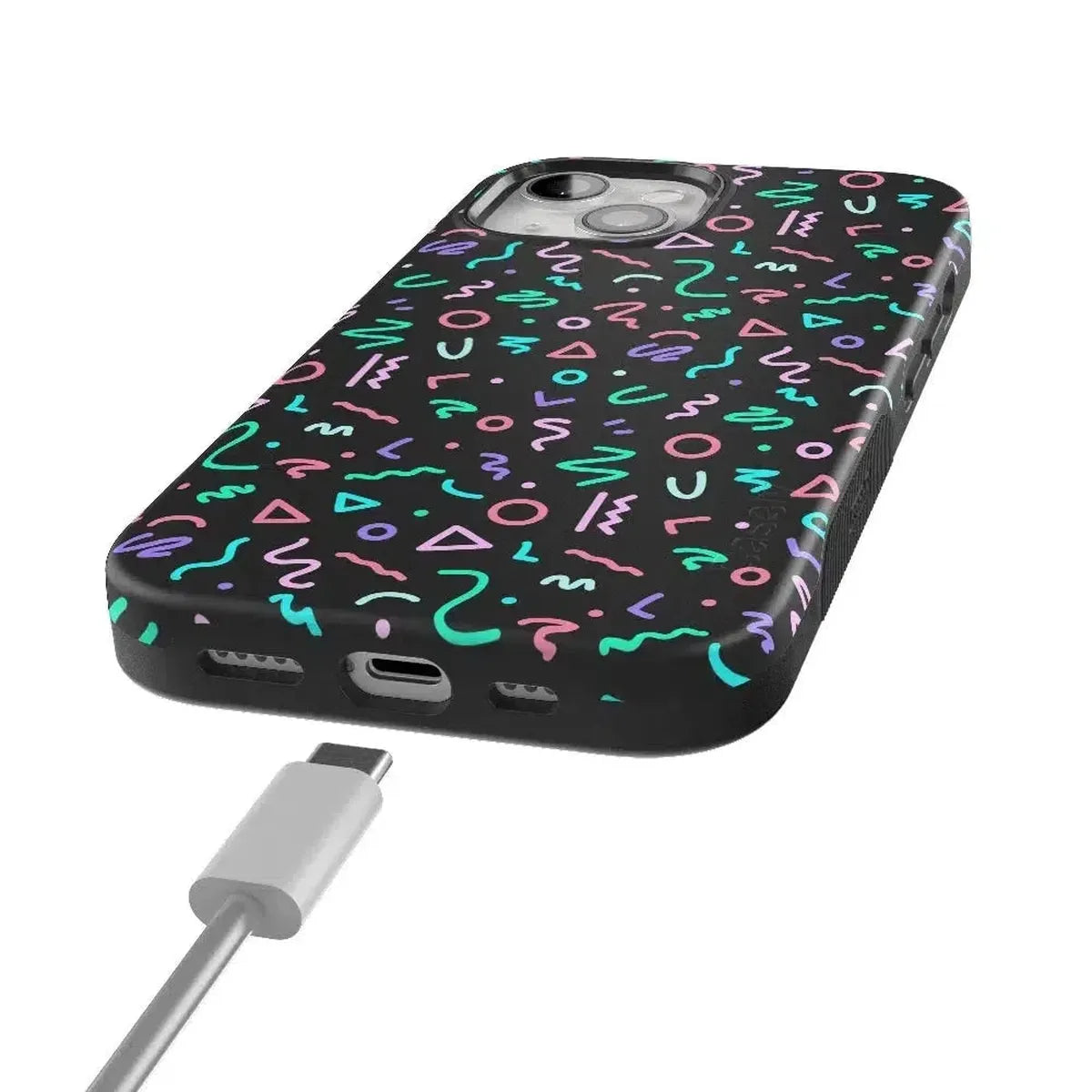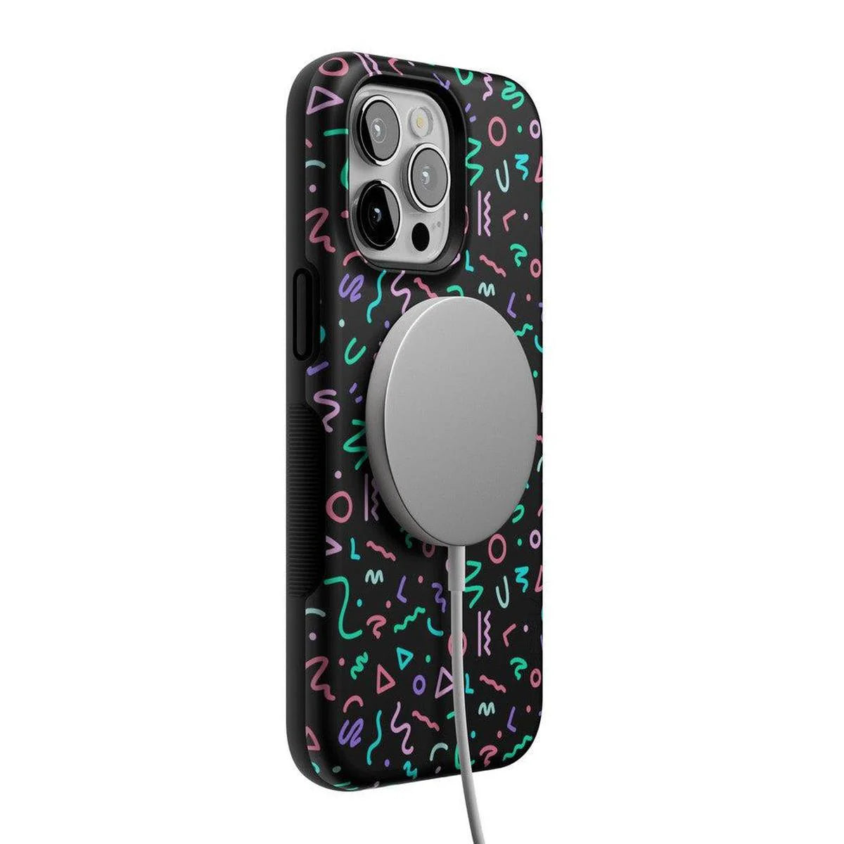 another style within 30 days of receiving your order.Are you a fan of retro styles? If so, you will love this Always Vibing case. With a design that gives off major 90’s vibes, you’ll inspire some nostalgia when people catch sight of this fun, abstract pattern. The black background and bright neon colors will match any of your accessories and show off your fun personality. This eye-catching product is not just for looks either. With custom sizes for all models of iPhones and Samsung devices, this case will keep your screen and buttons safe in any accident. Why have a boring phone when you can have a trendy one? Show off your fly side with this stand out case today!