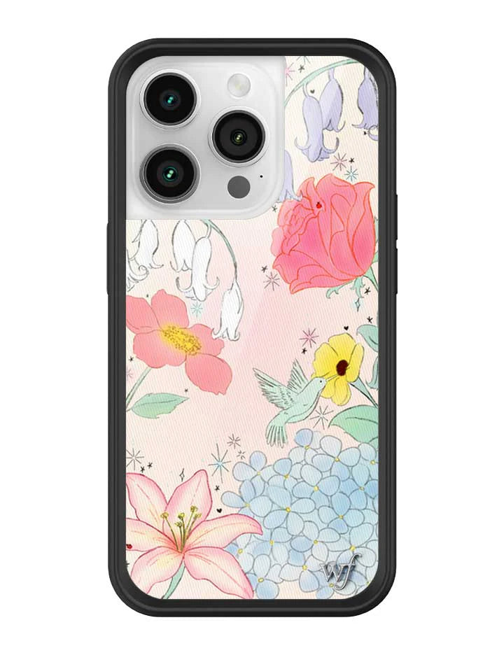another style within 30 days of receiving your order.Drift away into a floral daydream with our Bluebelle Dreams iPhone case. A soft pastel sky sets the scene for blooming bluebells, delicate wildflowers, and the sweetest little hummingbird. It’s golden hour in our secret garden — peaceful, whimsical, and full of magic. This limited edition case is perfect for nature lovers, flower girls, and anyone chasing pretty little moments.