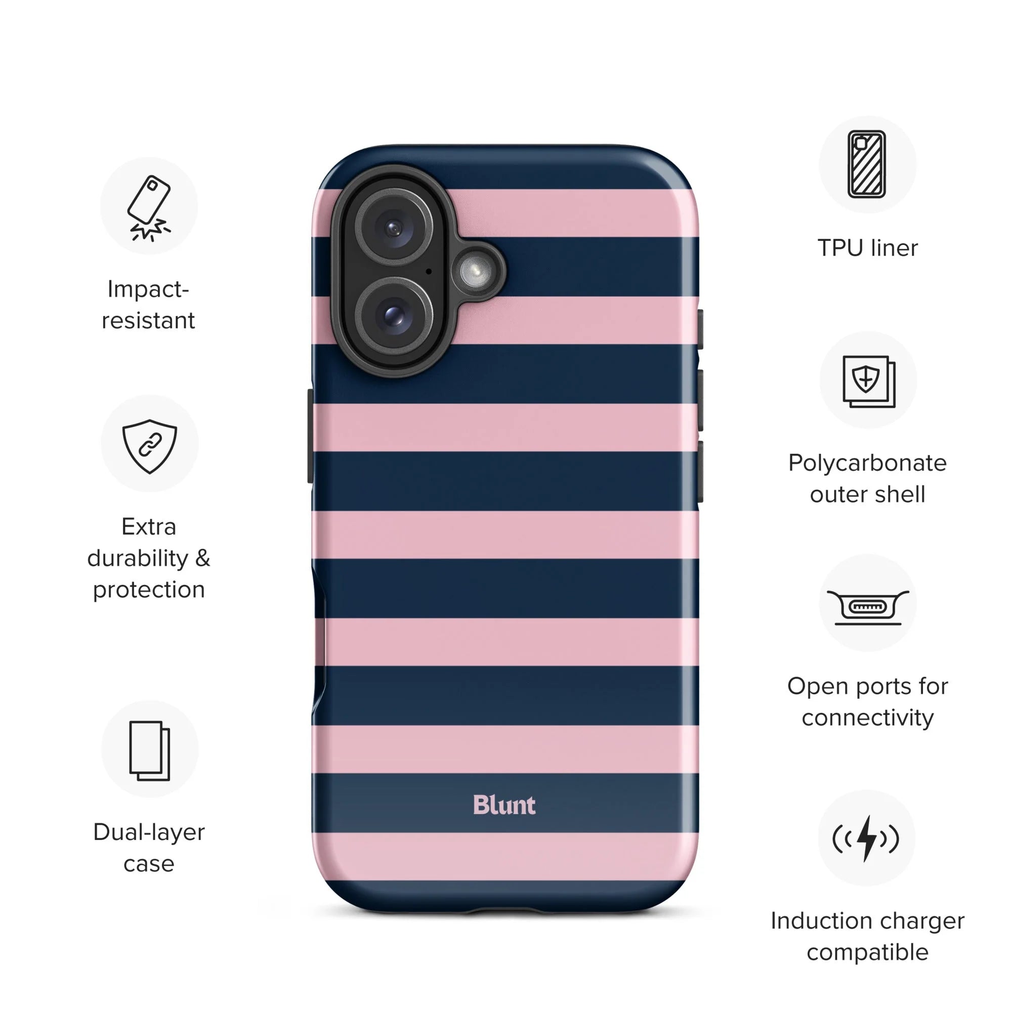 another style within 30 days of receiving your order.Meet your new favorite accessory: the Blueberry Blush Stripe iPhone Case. Designed to protect your phone with a slim, lightweight feel and a high-gloss finish. Keep your phone safe from drops while turning heads wherever you go.