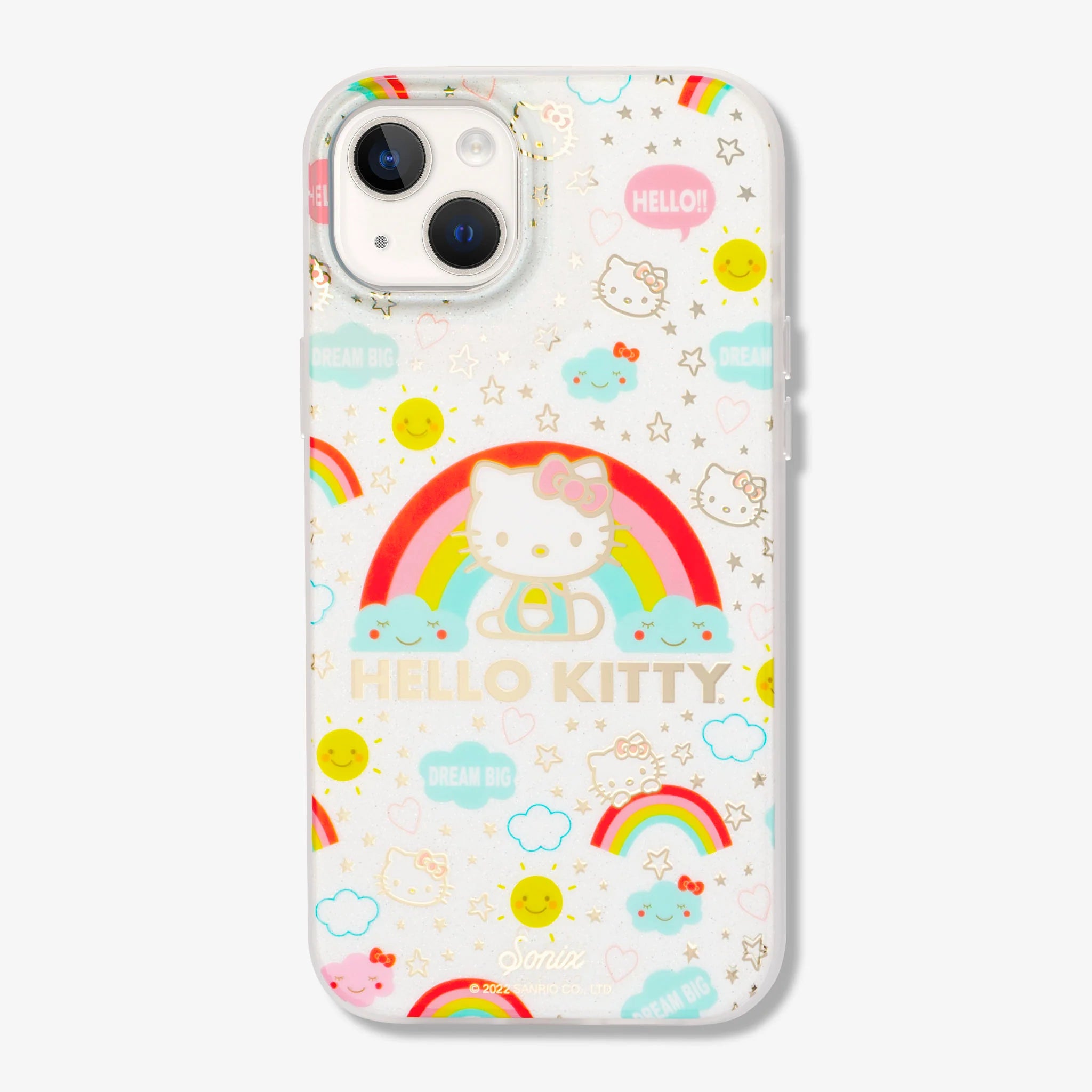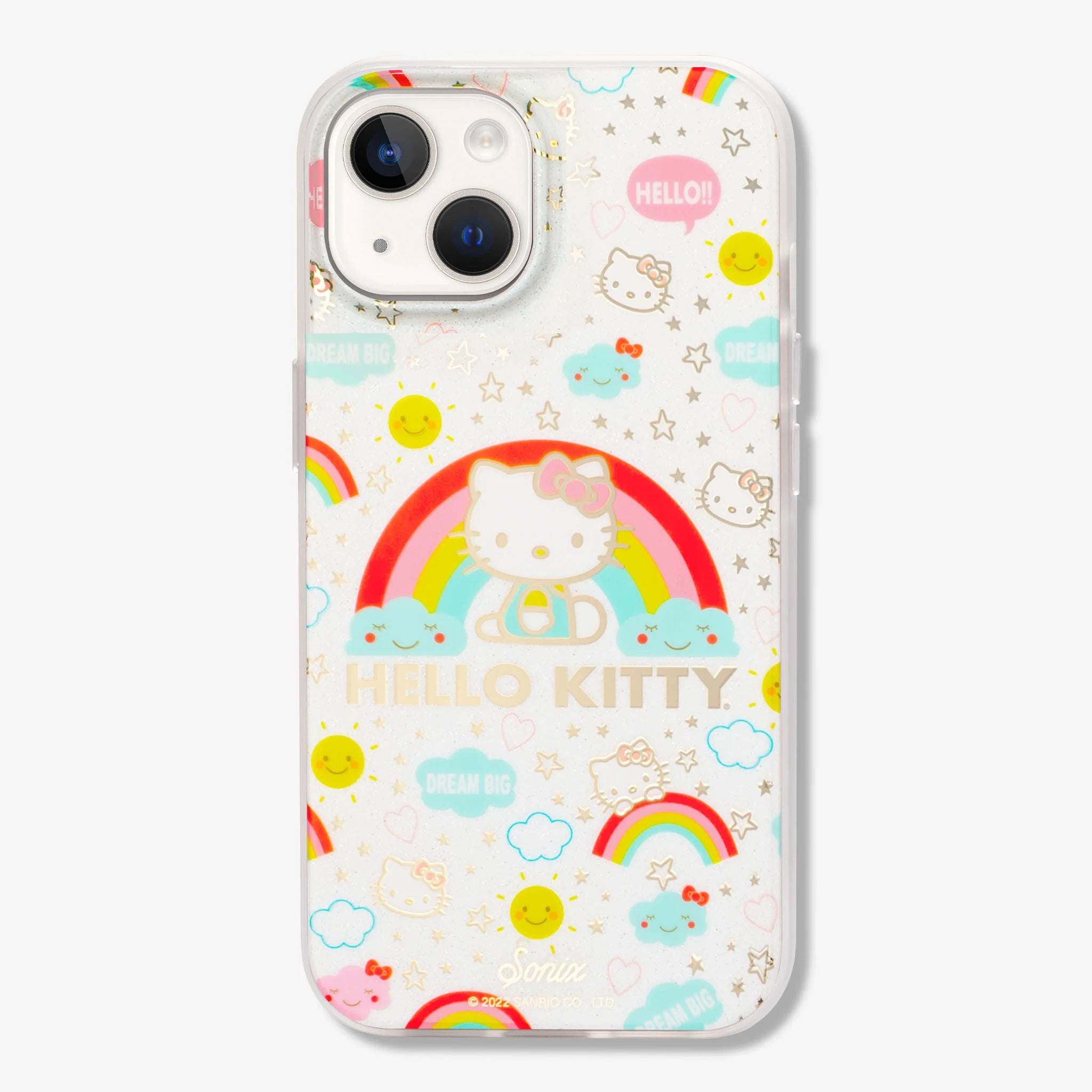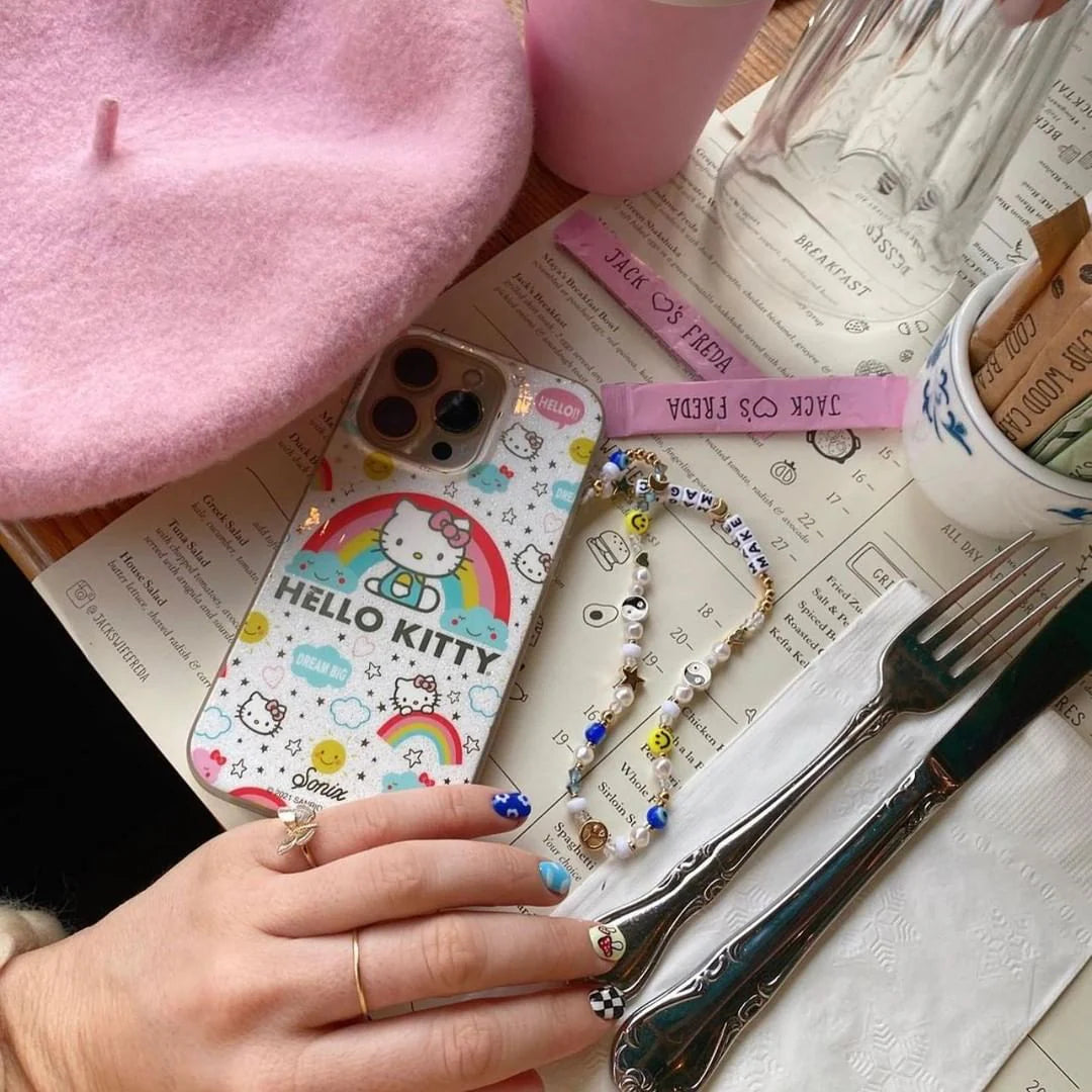 The Cosmic Hello Kitty® MagSafe® Compatible iPhone case features the cool pastel hues of the rainbow with a pop of bold red. With gold foil stars and Hello Kitty® accents, this case brings a touch of sun and sparkle everywhere it goes.