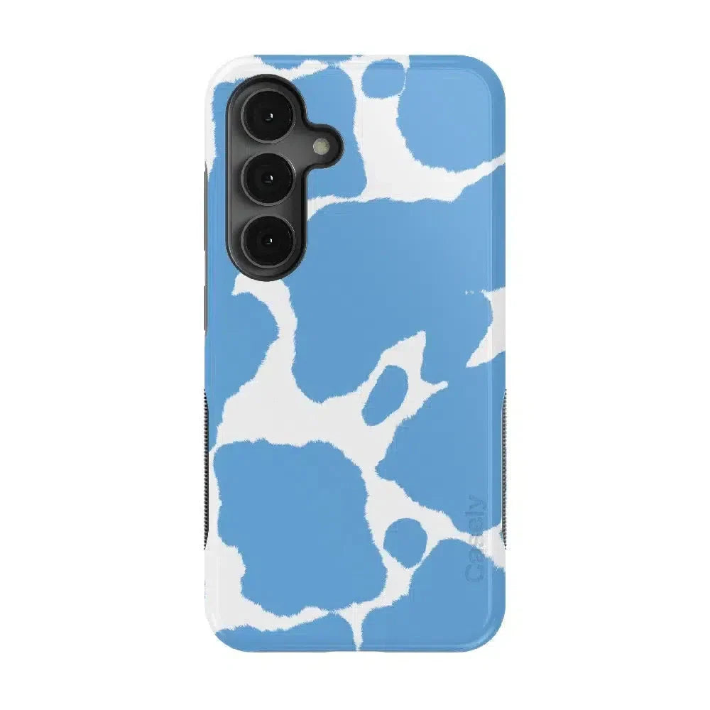 another style within 30 days of receiving your order.Step into a whimsical world with the Current MOOd Light Blue Cow Print Samsung Case! This playful accessory is designed to make your Samsung device moo-velous. The light blue cow print design is a fun and quirky representation of your unique style. It's like having a farm-fresh fashion statement in your hand. Not only does it look udder-ly fabulous, but it also provides reliable protection for your phone. Let your phone show off its spots with the Current MOOd Light Blue Cow Print Samsung Case. Order yours today and embrace the fun!