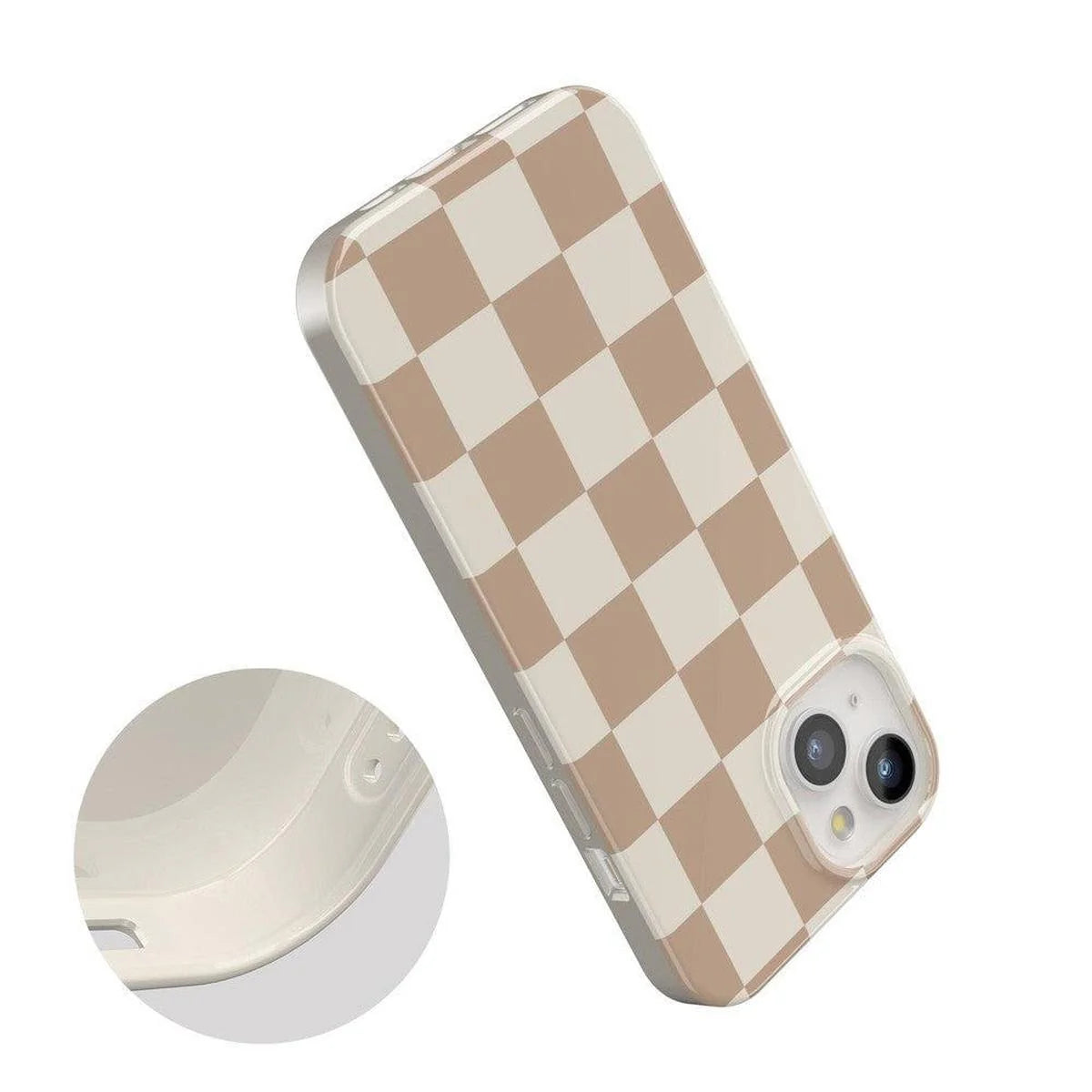 another style within 30 days of receiving your order.Out of all of our cases, the Fit Check is probably one of the most muted designs - and that's its greatest strength. Neutrals are huge right now, so why not keep the vibe going with the perfect case to match? If your wardrobe is mainly whites, creams, browns, and beiges, there's no other choice than the Neutral Checkerboard case for your latest fit check.
