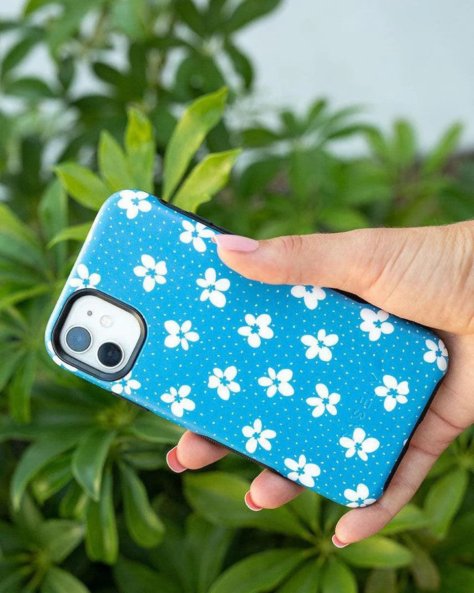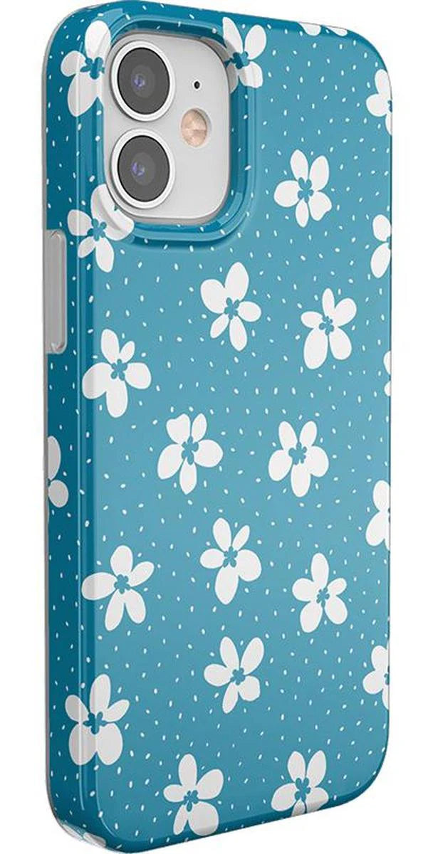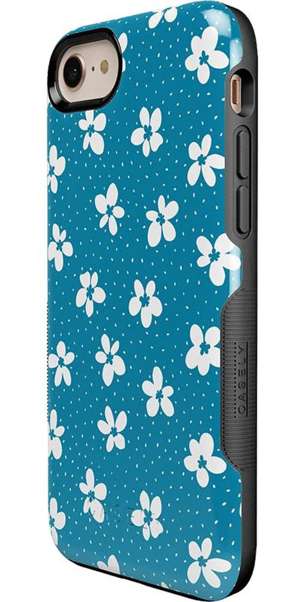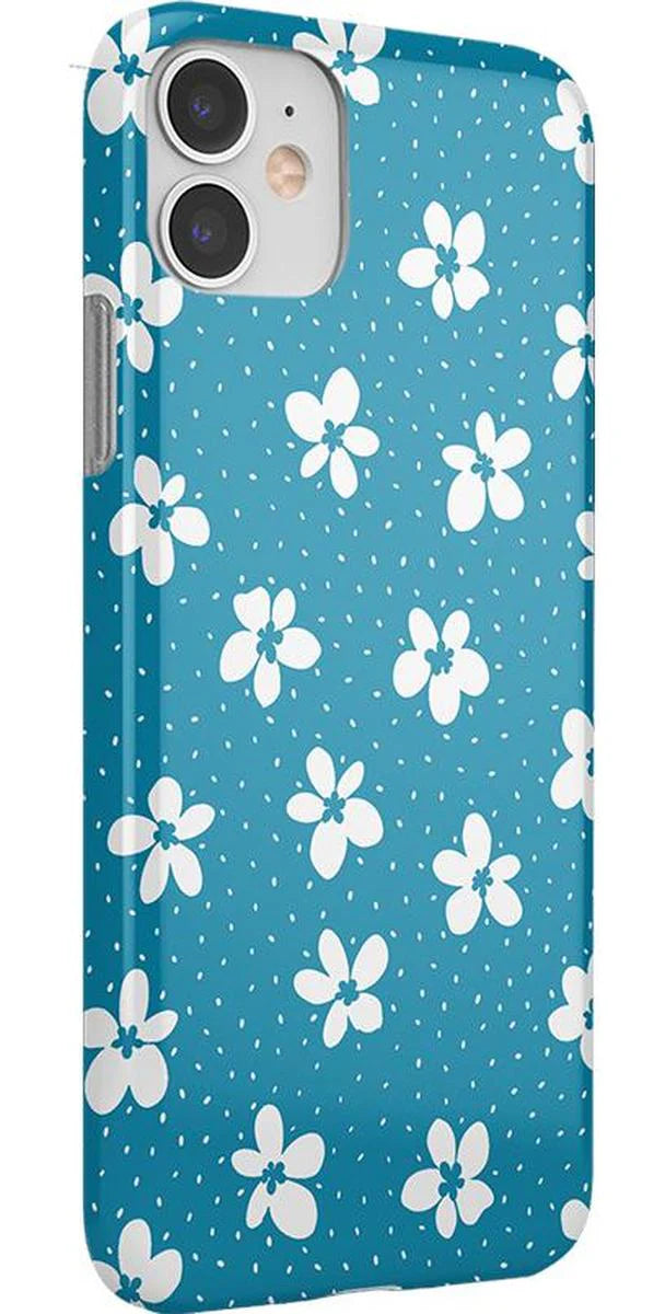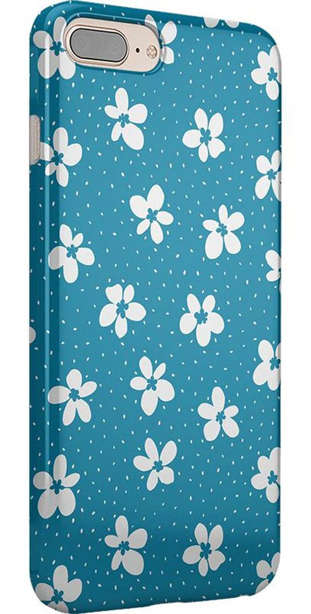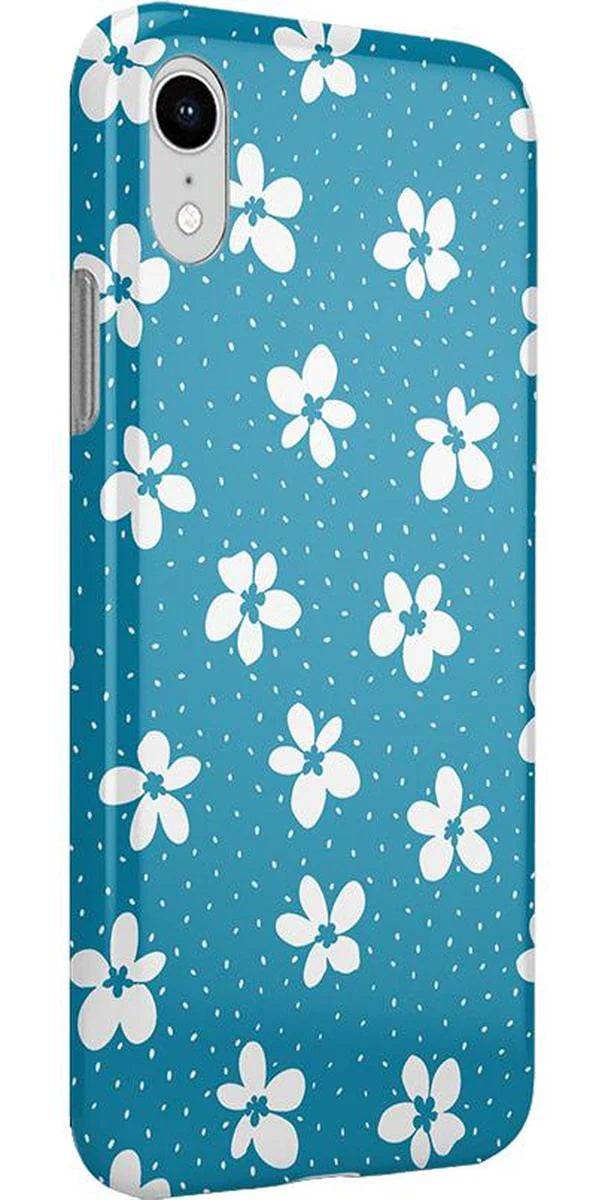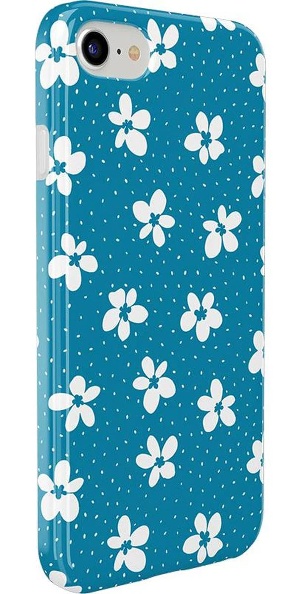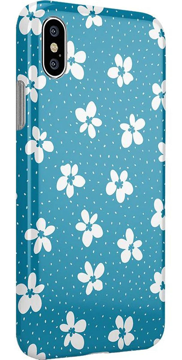 another style within 30 days of receiving your order.From both the Bold and Classic Collections, the Flower My World Ocean Blue Flower Case is the perfect addition to any generation of iPhone! Its design of white flowers arranged in a stunning asymmetrical pattern with several unique flora in bloom on its entire design, making this bright choice all the more special and reminiscent of the natural world. Combining nautical and floral elements, the flowers are strewn across a soft blue background that makes you think of a salty sea or Oceanside forest. Any negative space on the case is eloquently filled with abstract white specs resembling flower seeds, so you don’t have to worry about the case being too plain. This case will go great with everyday outfits, as well as more formal attire. Along with a beautiful design, this case also has edges that are purposefully raised. These constructed edges serve to protect your phone from any falls and resulting damages, like broken buttons or a chipped screen. Its built-in shock absorption will keep your phone safe, no matter what your daily schedule looks like.