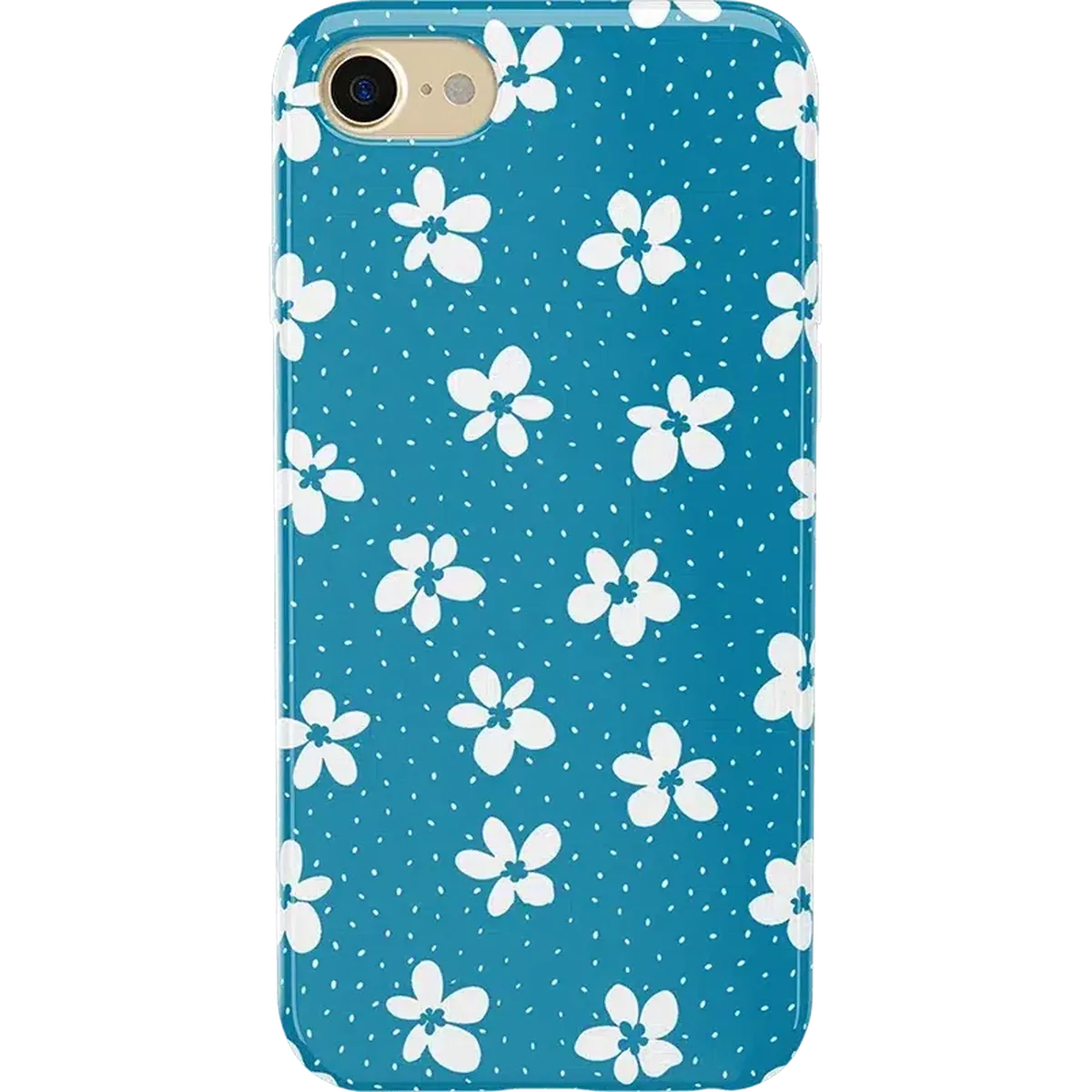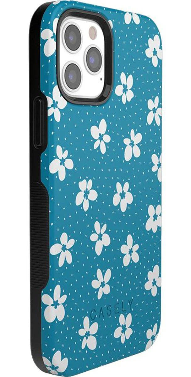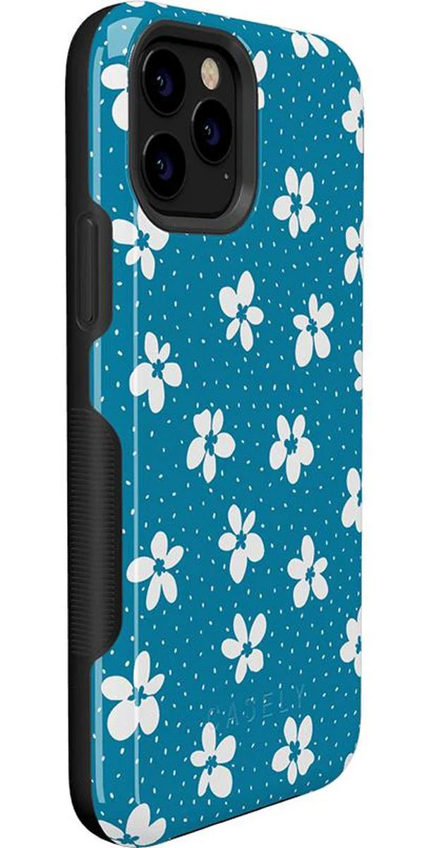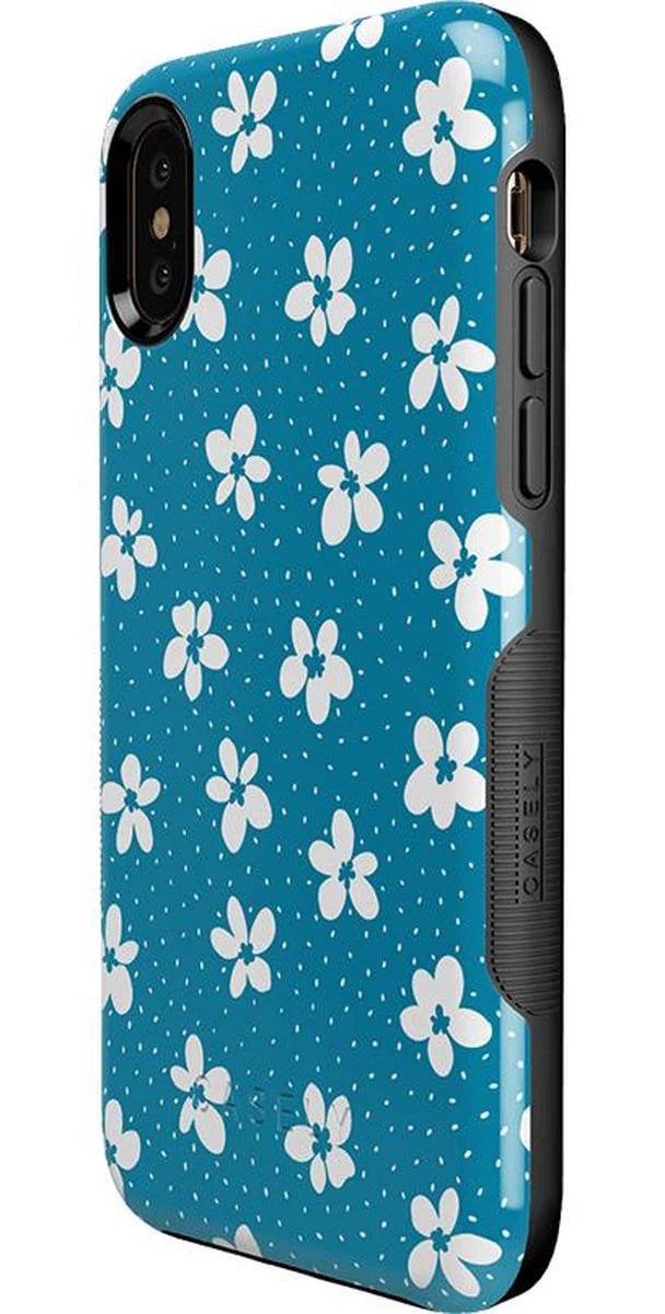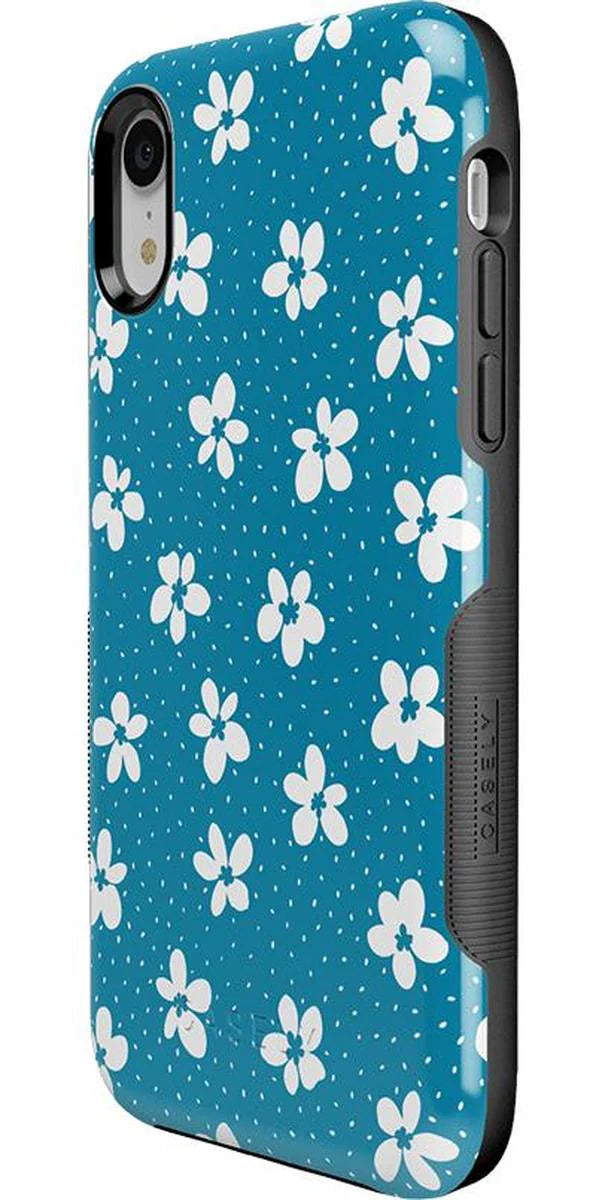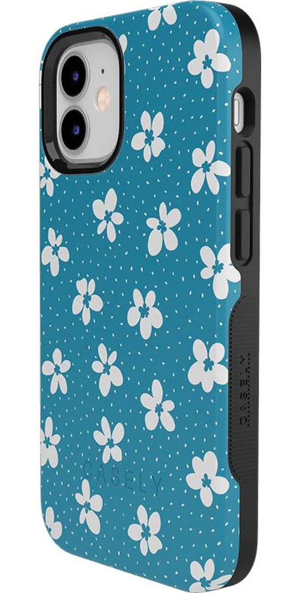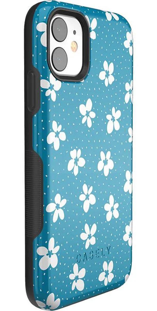 another style within 30 days of receiving your order.From both the Bold and Classic Collections, the Flower My World Ocean Blue Flower Case is the perfect addition to any generation of iPhone! Its design of white flowers arranged in a stunning asymmetrical pattern with several unique flora in bloom on its entire design, making this bright choice all the more special and reminiscent of the natural world. Combining nautical and floral elements, the flowers are strewn across a soft blue background that makes you think of a salty sea or Oceanside forest. Any negative space on the case is eloquently filled with abstract white specs resembling flower seeds, so you don’t have to worry about the case being too plain. This case will go great with everyday outfits, as well as more formal attire. Along with a beautiful design, this case also has edges that are purposefully raised. These constructed edges serve to protect your phone from any falls and resulting damages, like broken buttons or a chipped screen. Its built-in shock absorption will keep your phone safe, no matter what your daily schedule looks like.