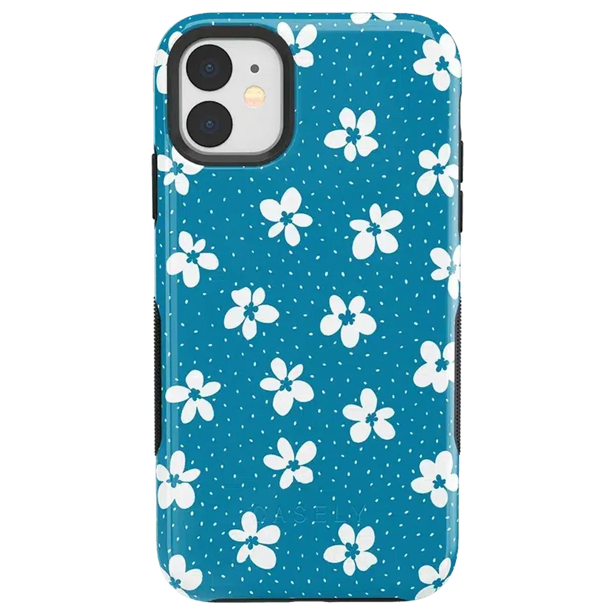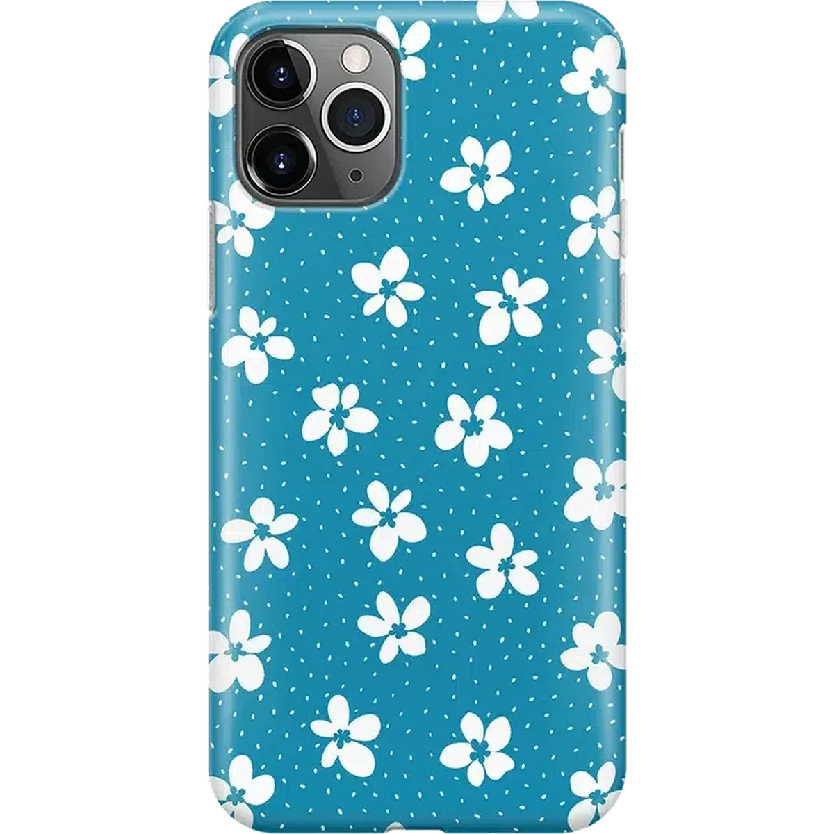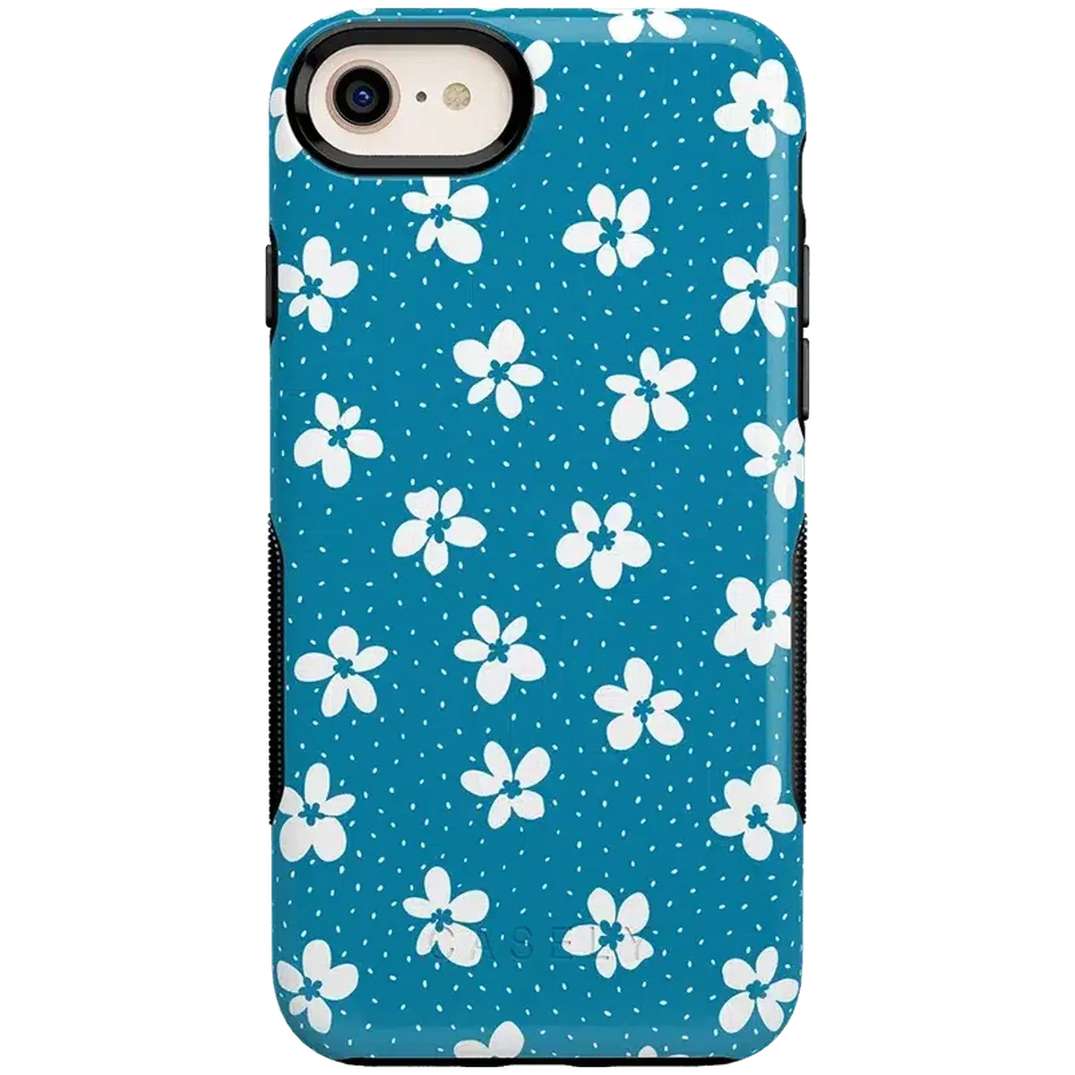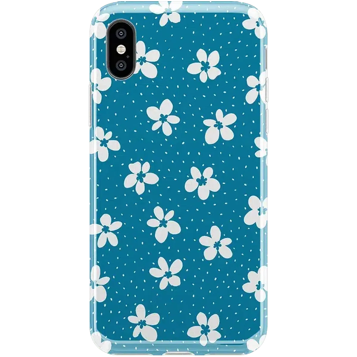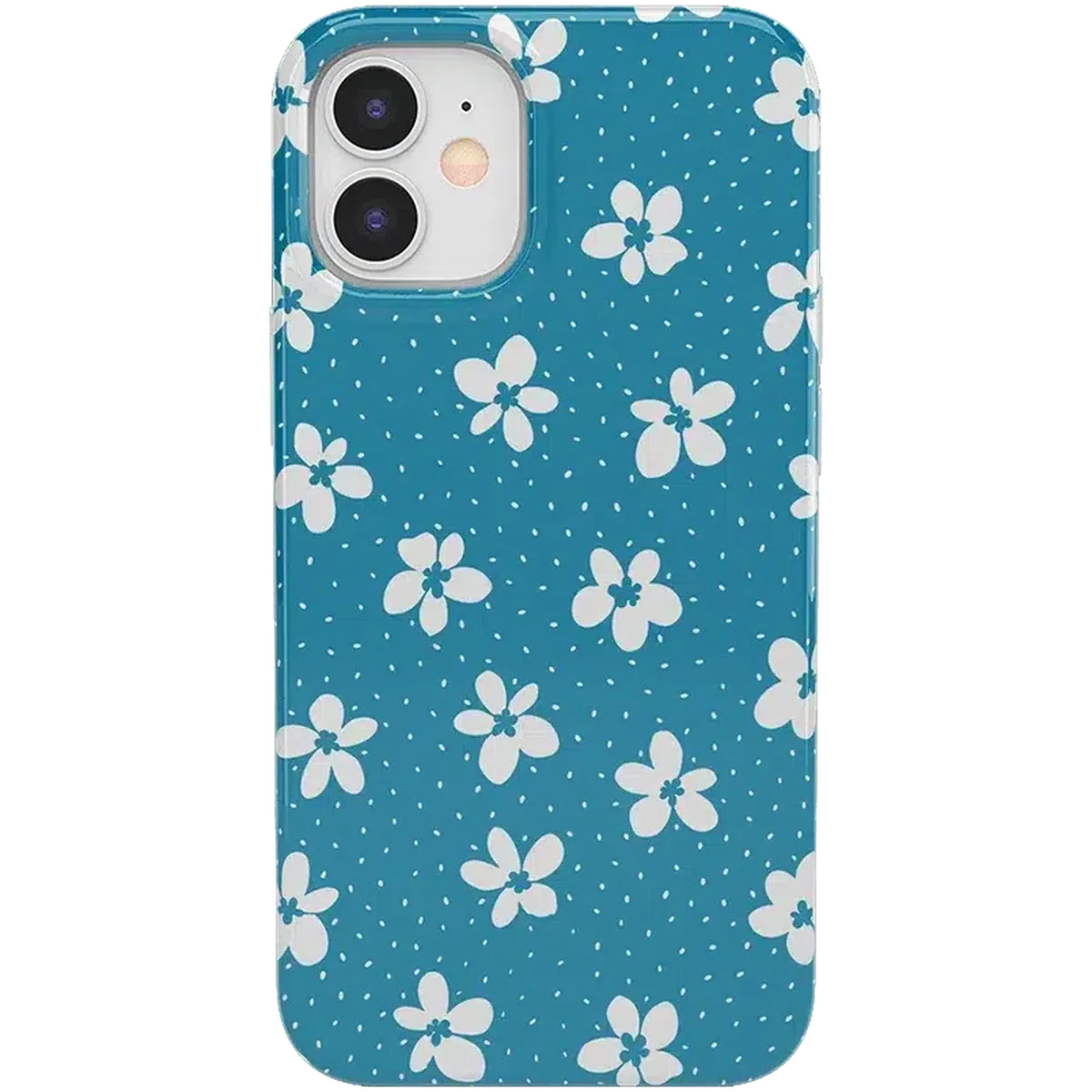 another style within 30 days of receiving your order.From both the Bold and Classic Collections, the Flower My World Ocean Blue Flower Case is the perfect addition to any generation of iPhone! Its design of white flowers arranged in a stunning asymmetrical pattern with several unique flora in bloom on its entire design, making this bright choice all the more special and reminiscent of the natural world. Combining nautical and floral elements, the flowers are strewn across a soft blue background that makes you think of a salty sea or Oceanside forest. Any negative space on the case is eloquently filled with abstract white specs resembling flower seeds, so you don’t have to worry about the case being too plain. This case will go great with everyday outfits, as well as more formal attire. Along with a beautiful design, this case also has edges that are purposefully raised. These constructed edges serve to protect your phone from any falls and resulting damages, like broken buttons or a chipped screen. Its built-in shock absorption will keep your phone safe, no matter what your daily schedule looks like.