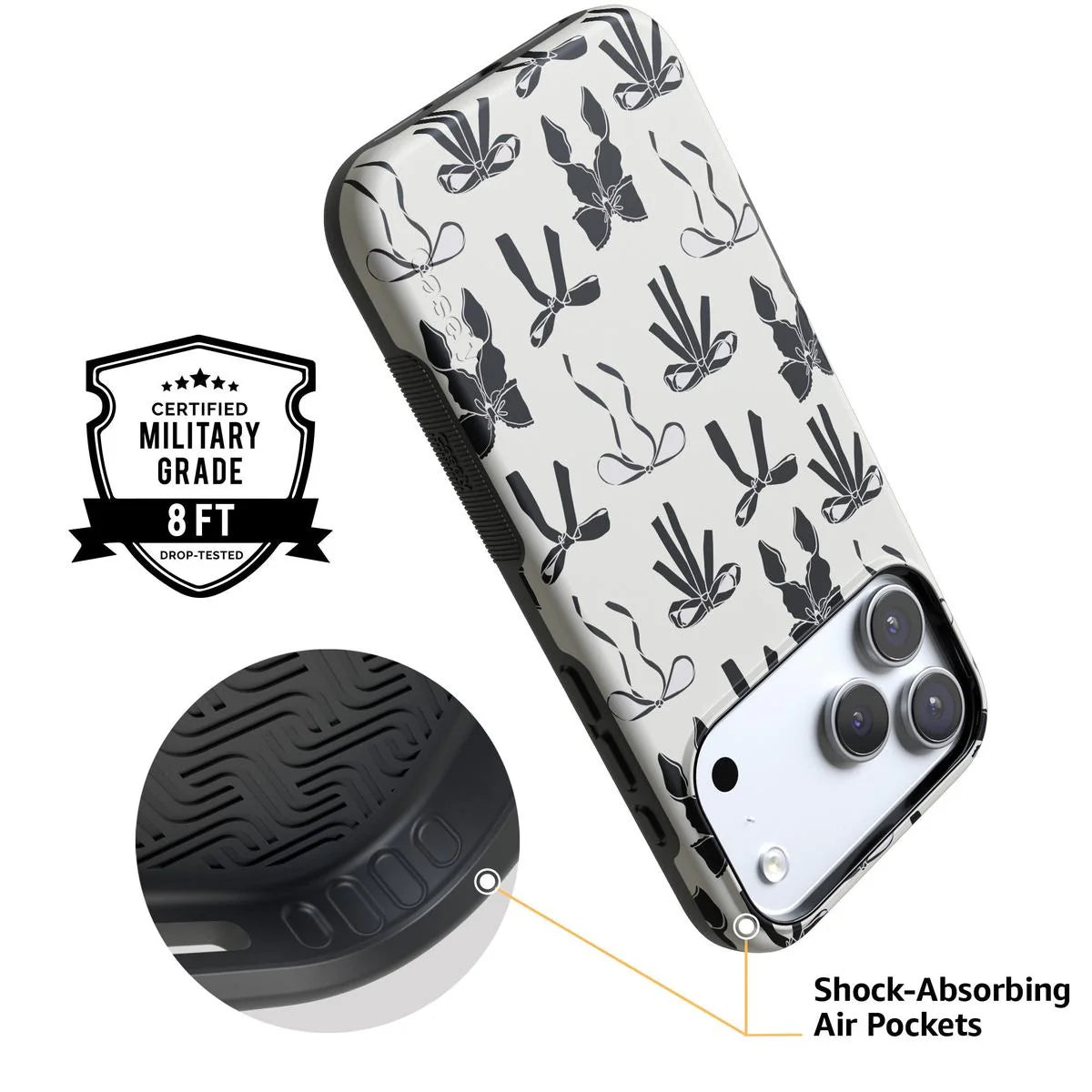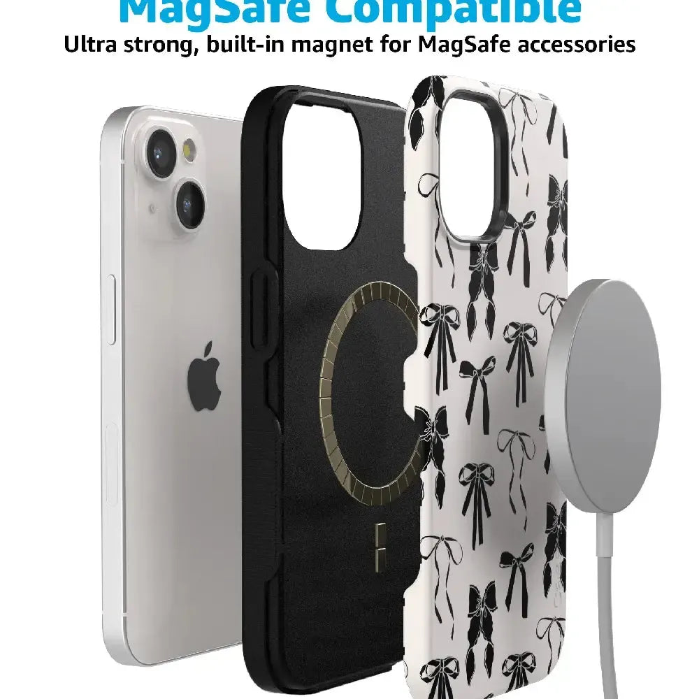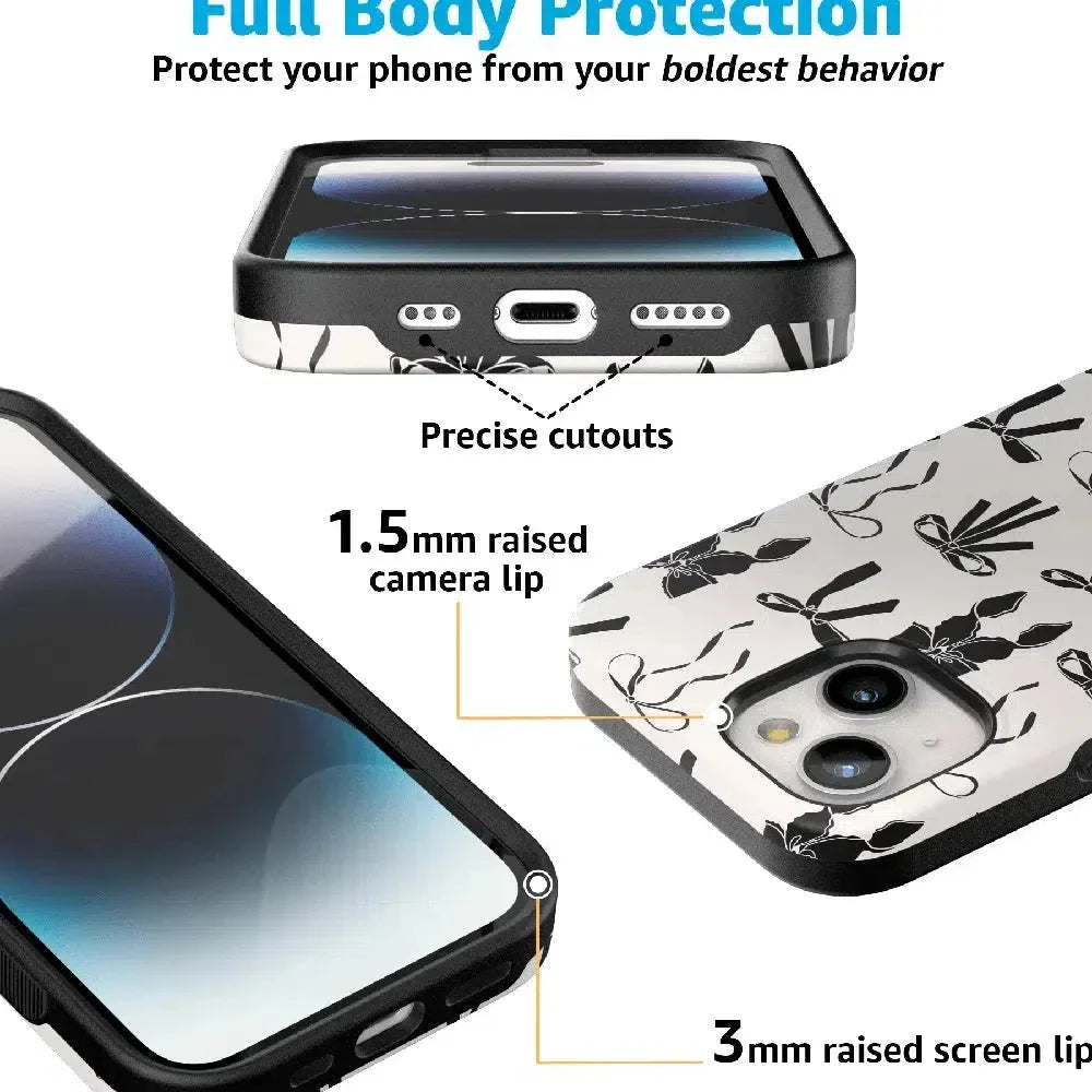 another style within 30 days of receiving your order.Meet the Goth Girlie Black Bows Case, the latest version of our best-selling . This new design adds a darker, edgier twist to the beloved style, perfect for those who love to mix cute with a bit of goth flair. Just like the original, it offers dual-layer protection to keep your phone safe from drops and bumps while maintaining a sleek profile. Elevate your style with this must-have case, combining classic bows with a bold, black aesthetic.