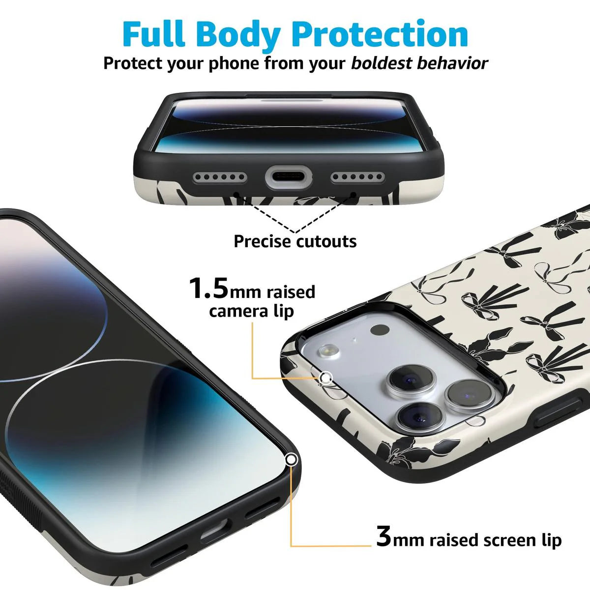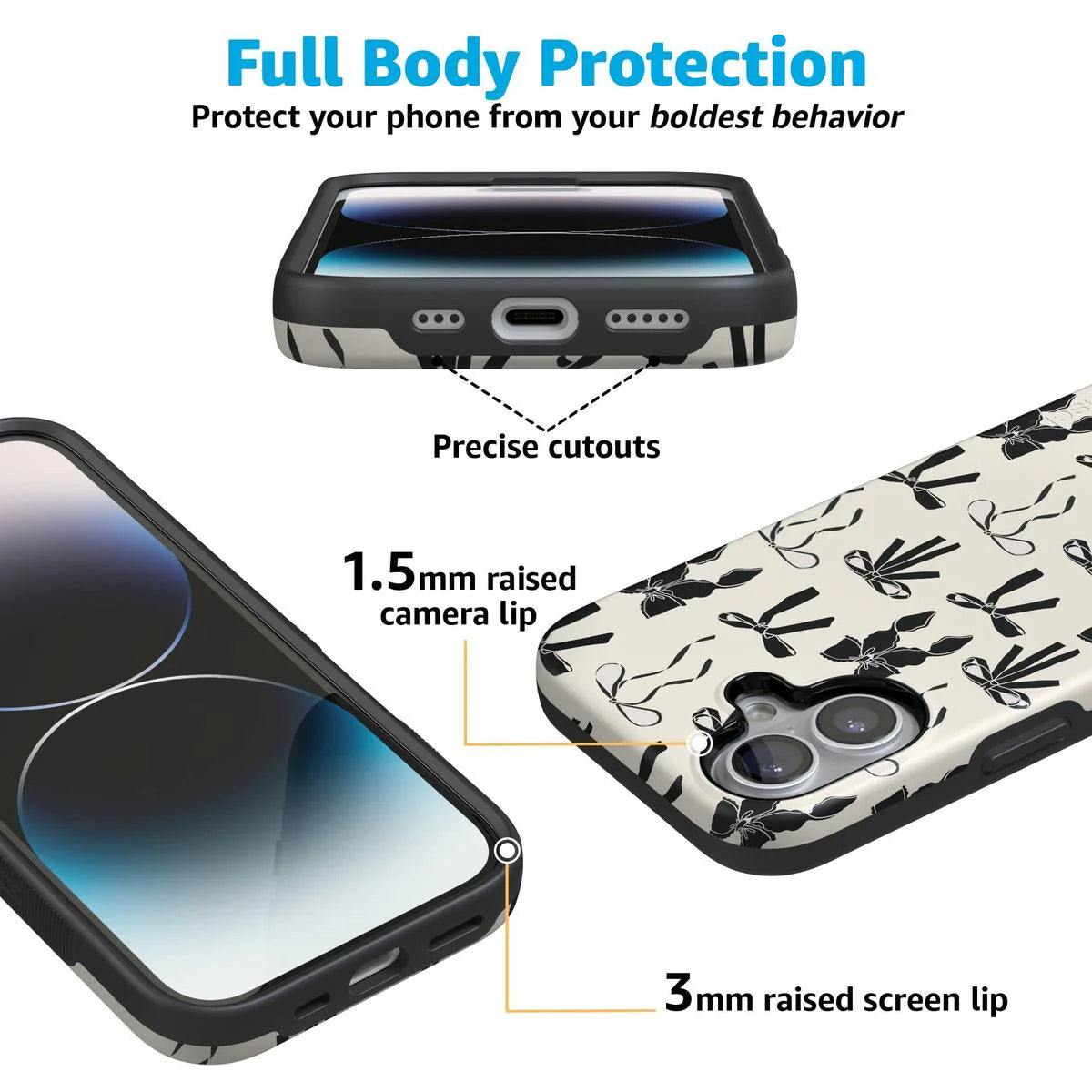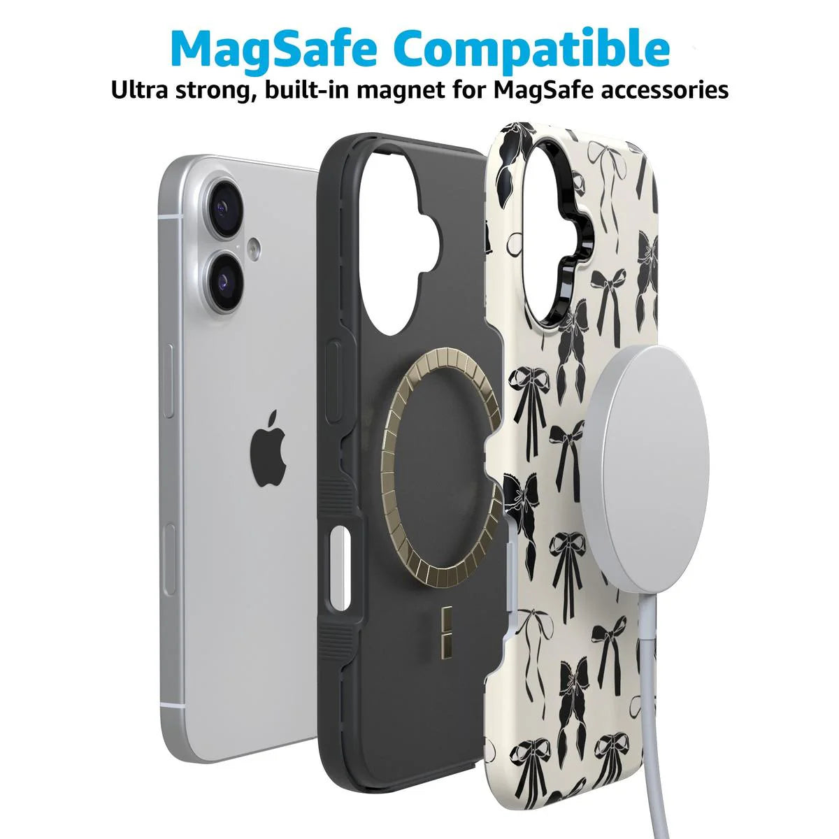 another style within 30 days of receiving your order.Meet the Goth Girlie Black Bows Case, the latest version of our best-selling . This new design adds a darker, edgier twist to the beloved style, perfect for those who love to mix cute with a bit of goth flair. Just like the original, it offers dual-layer protection to keep your phone safe from drops and bumps while maintaining a sleek profile. Elevate your style with this must-have case, combining classic bows with a bold, black aesthetic.