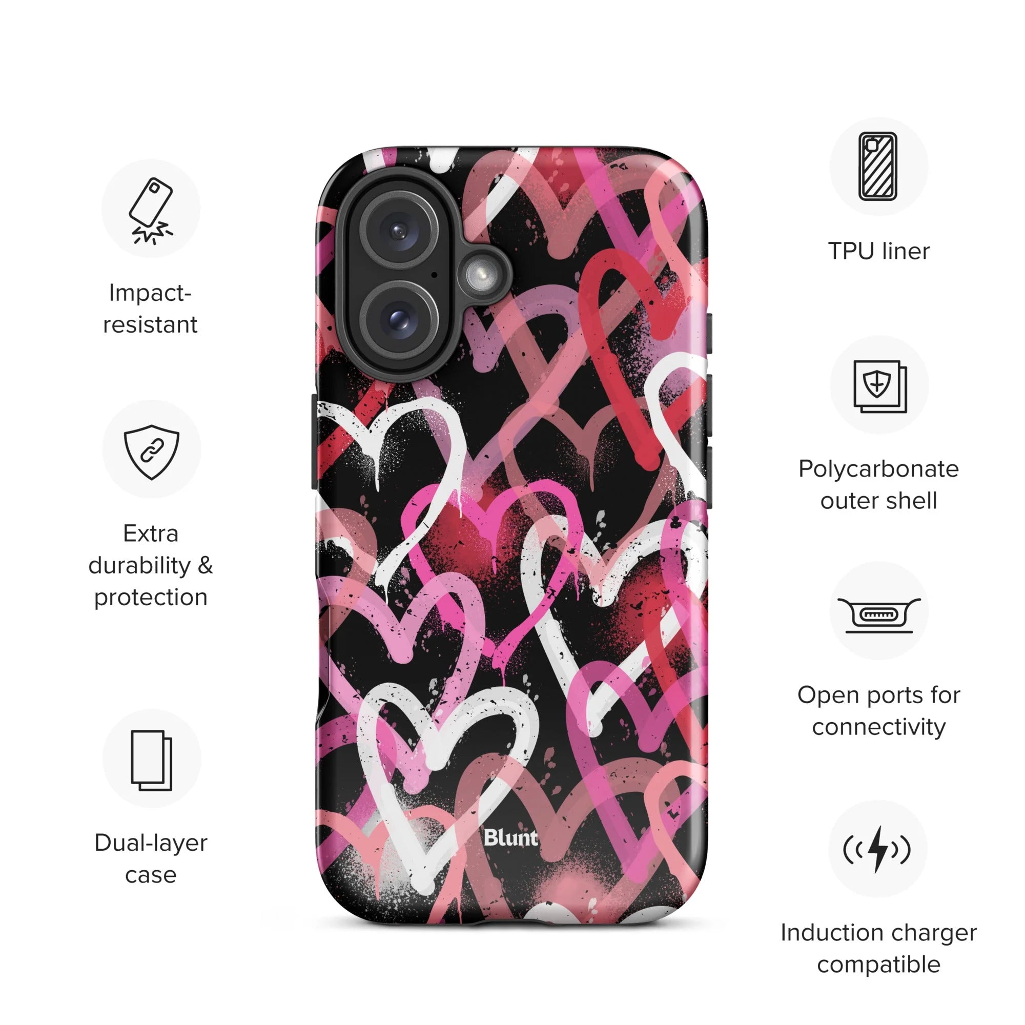 another style within 30 days of receiving your order.Protect your iPhone in style with the Heartbreaker iPhone Case by Blunt Cases. This cute and durable case offers tough protection while adding a touch of Blunt style to your iPhone. Keep your phone safe from scratches, drops, and daily wear and tear with our specially designed iPhone cover. Perfect for those who want to blend fashion and functionality seamlessly.