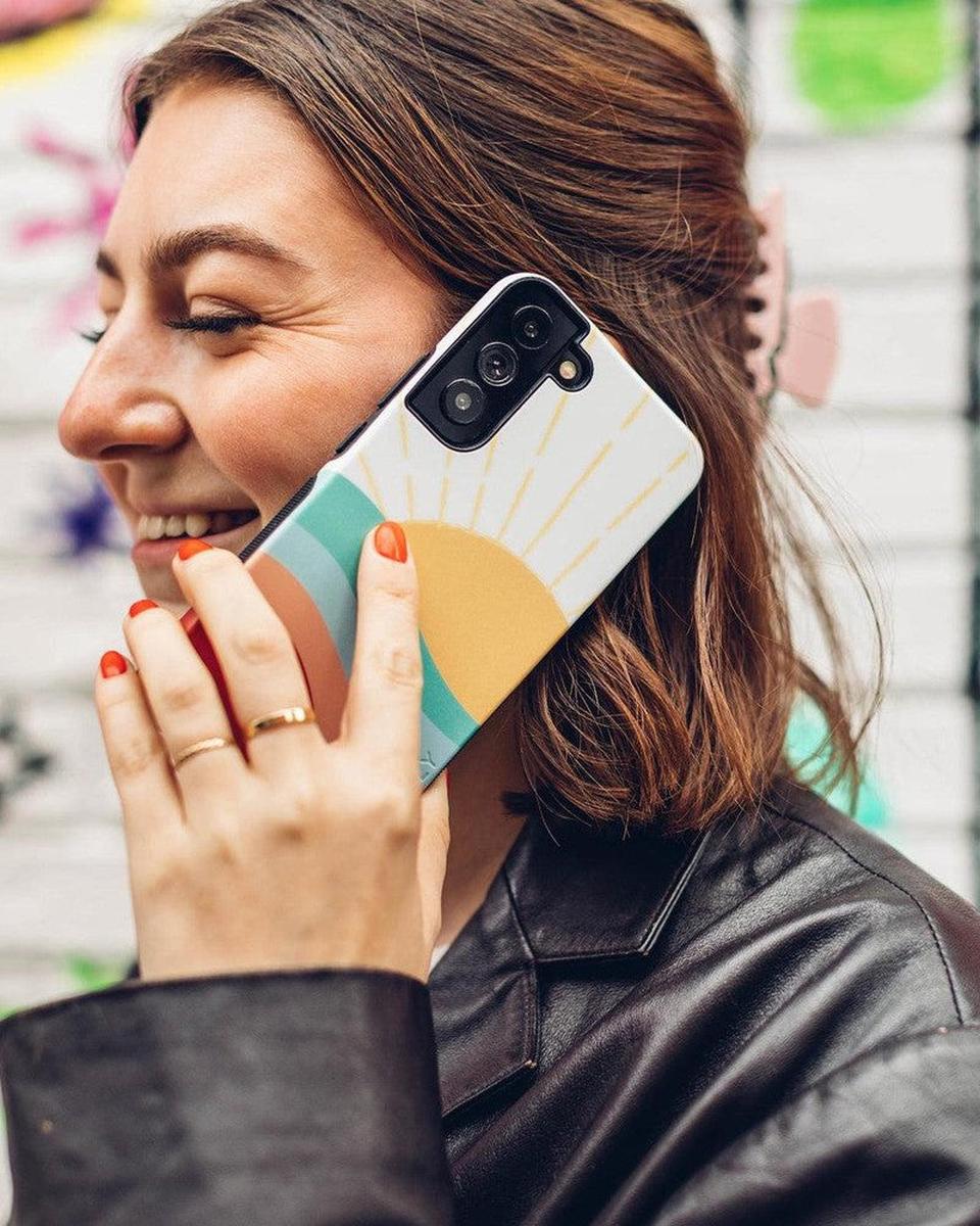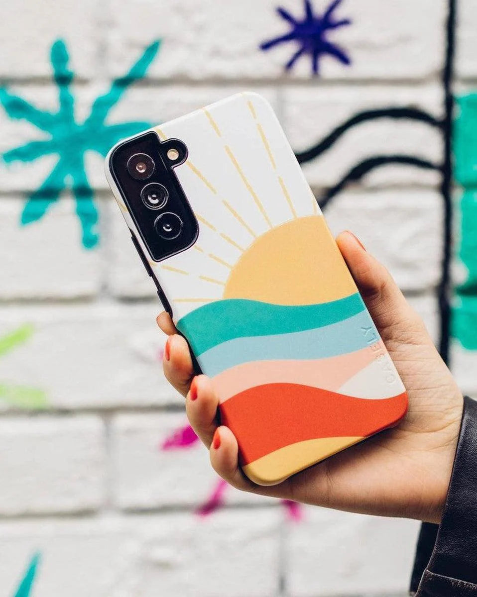 another style within 30 days of receiving your order.Take your phone aesthetic to the next level with our Here Comes The Sun phone case, available for Samsung Galaxy S22, Samsung Galaxy S22 Plus, and the Samsung Galaxy S22 Ultra. This ultra-protective case is both stylish and durable, giving your phone the perfect balance of design and safety. The case is easy to apply too, as it simply slots right onto the back with ease.