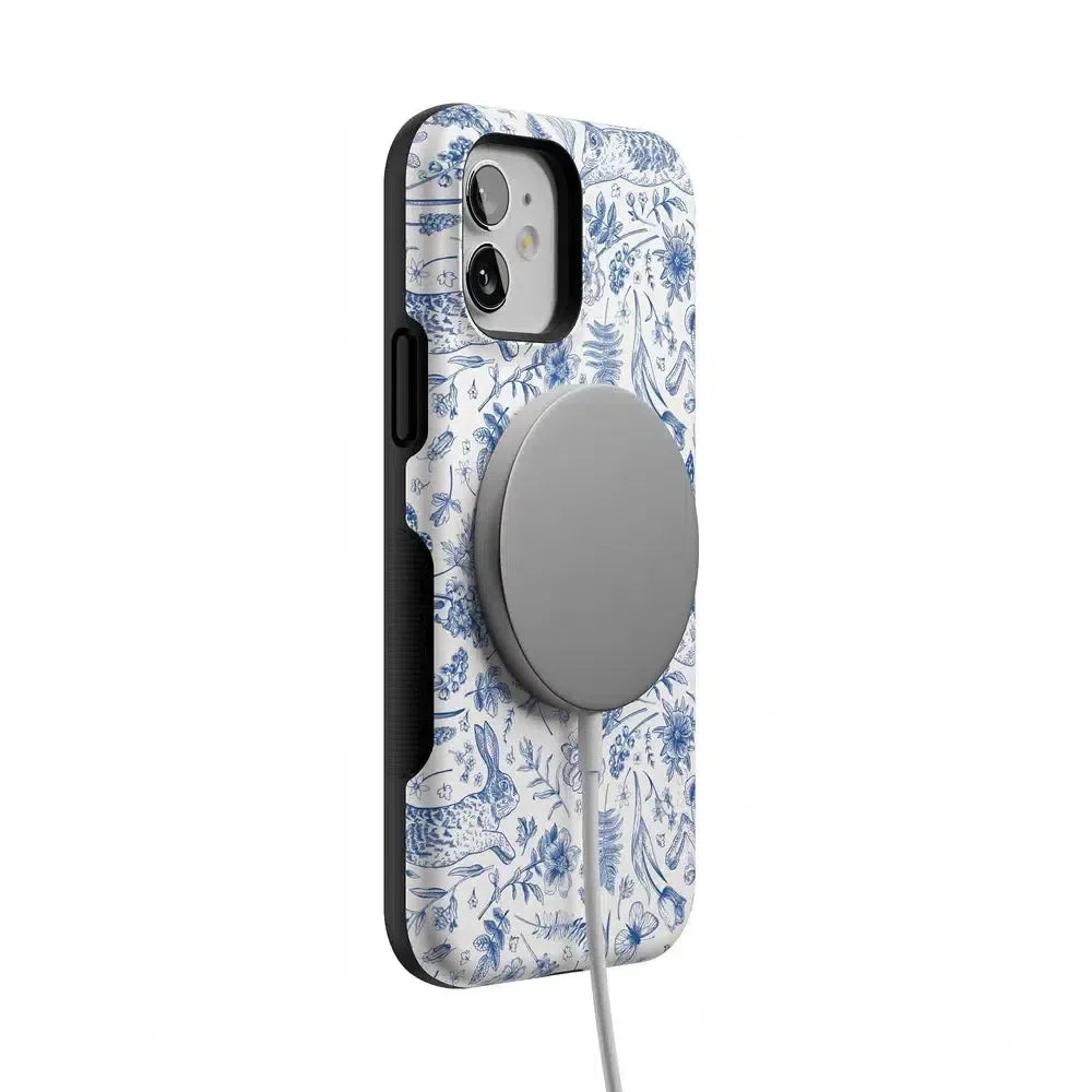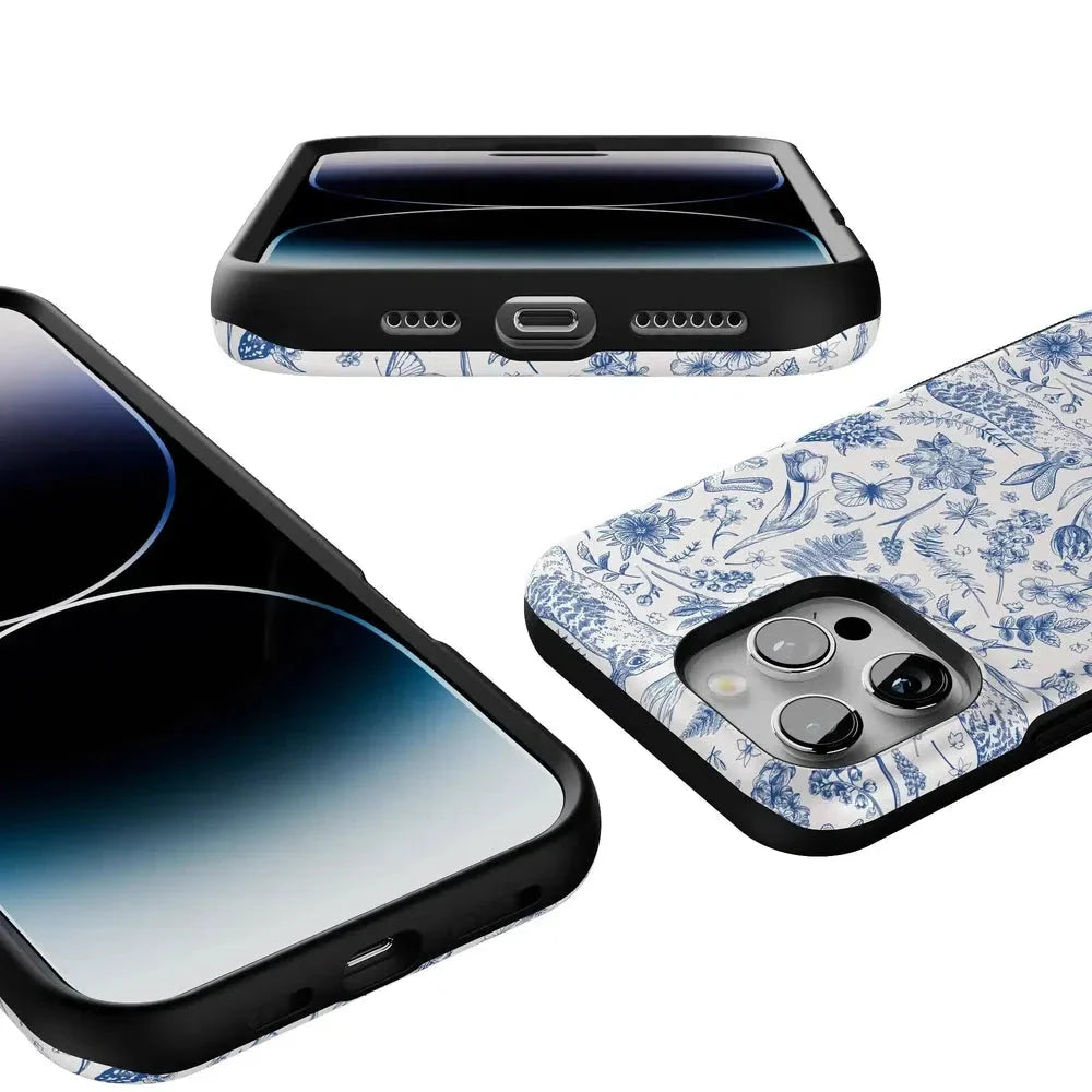 another style within 30 days of receiving your order.Meet the Hop & Bloom Bunny Toile Case, your new fave for adding a splash of whimsy to your tech game! This case, featuring adorable bunnies and blooming florals, is perfect for those who love a blend of vintage charm and modern chic, or a touch of festive flair for the Easter holiday. Protect your phone in style and hop into a world of cuteness overload!