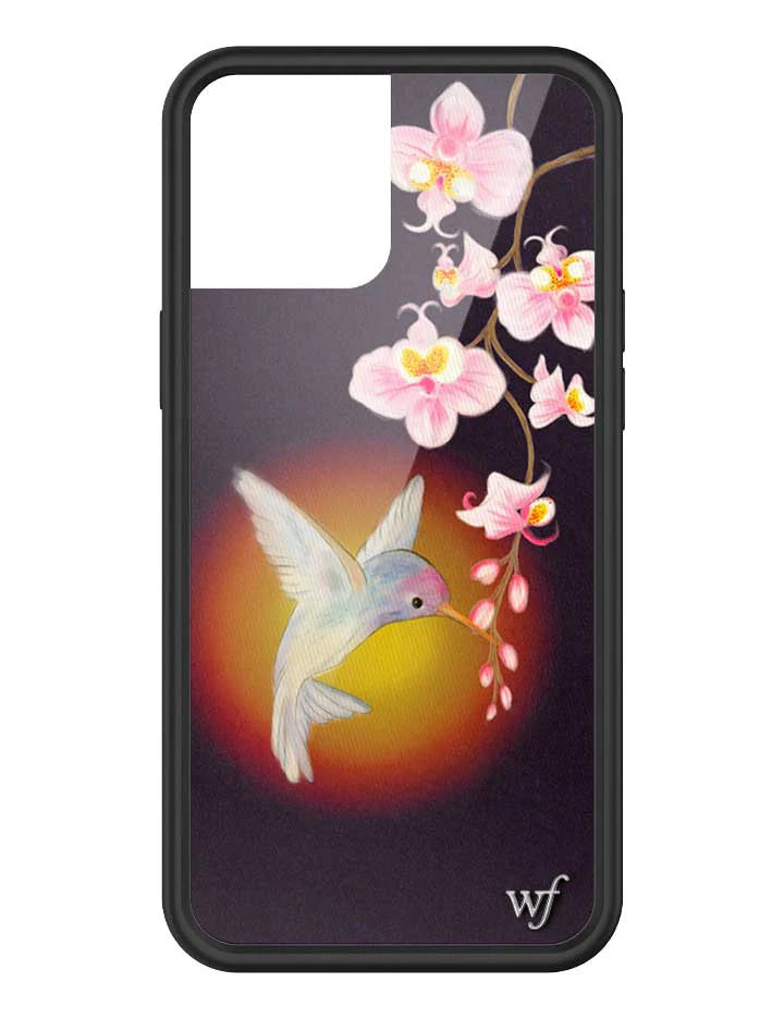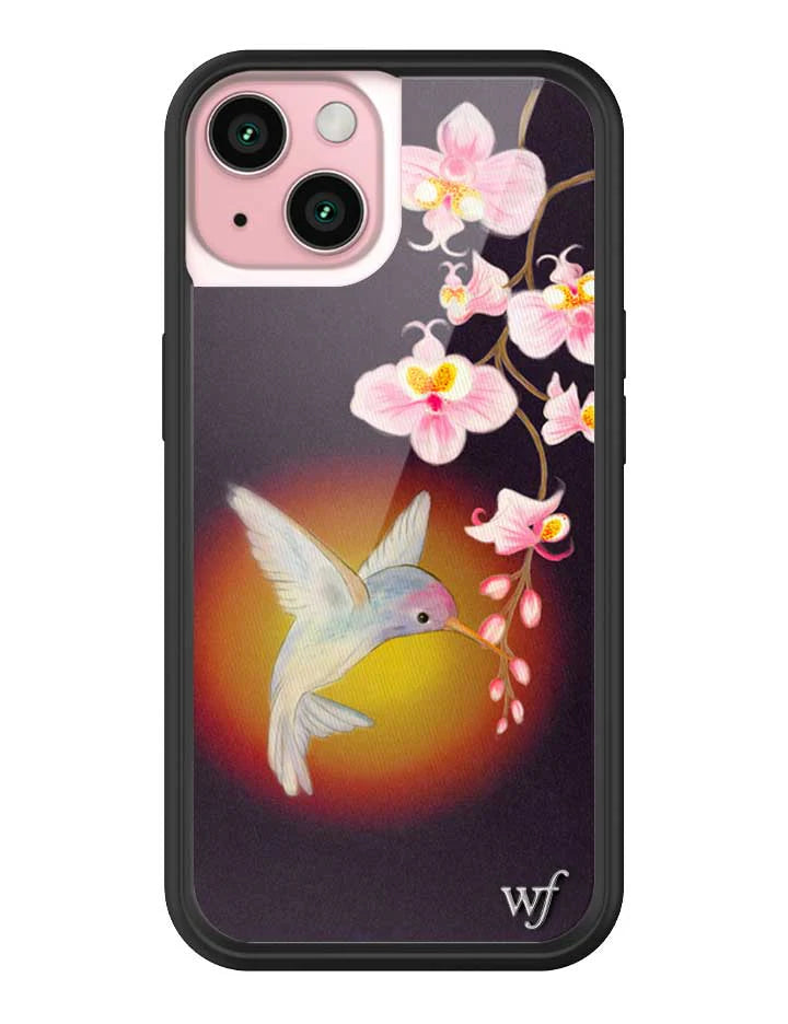 another style within 30 days of receiving your order.Bring nature's beauty to your phone with our Hummingbird iPhone case! Featuring a rich dark plum background, this design captures a hummingbird feeding from flowers, with a soft aura illuminating its graceful moment. Grab this limited edition case before it flies away!