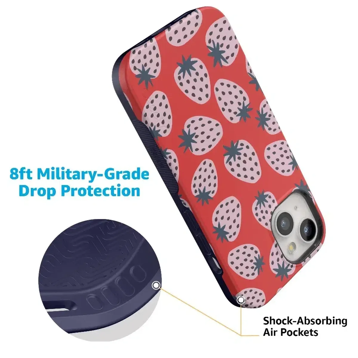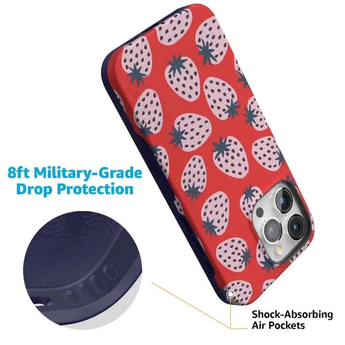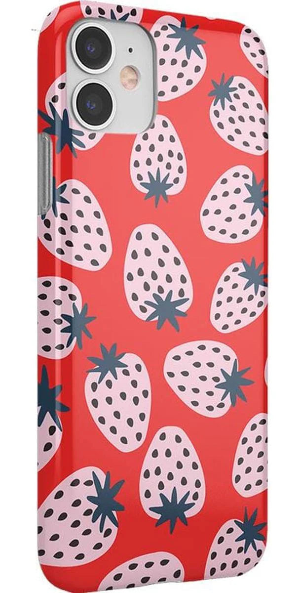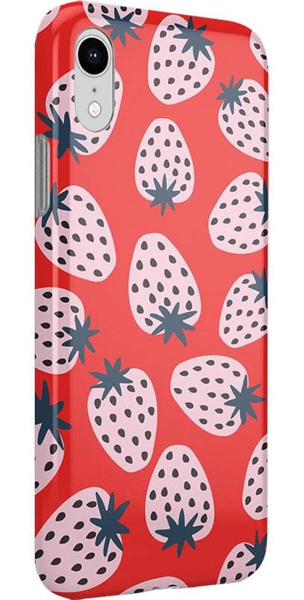 another style within 30 days of receiving your order.Playful meets protection with this very-strawberry design! The powder-pink strawberries against a popping red background make this case immediately stand out. Compliments and conversations are bound to accompany this case as it says young, bold, and fresh.