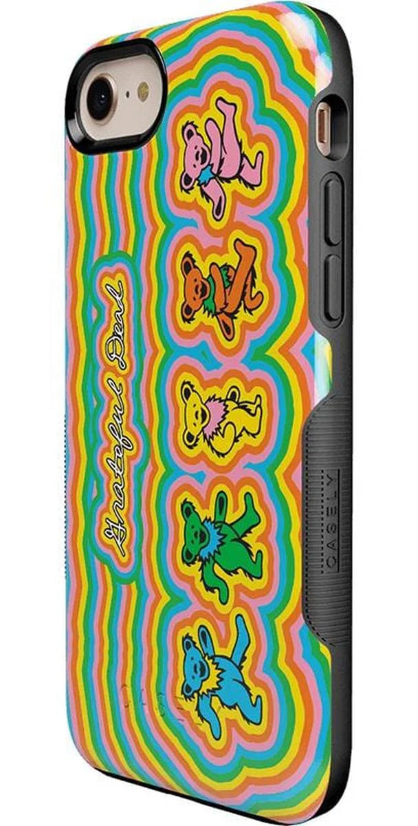 another style within 30 days of receiving your order.Looking to get in touch with your groovy side? This Grateful Dead Dancing Bears Case may be exactly what you need! It features five bears colored in shades of blue, green, yellow, orange, and pink. They are all positioned sideways and performing dance moves that complement one another. The bears expand out to fill the rest of the case, flooding your phone with beautiful colors.
