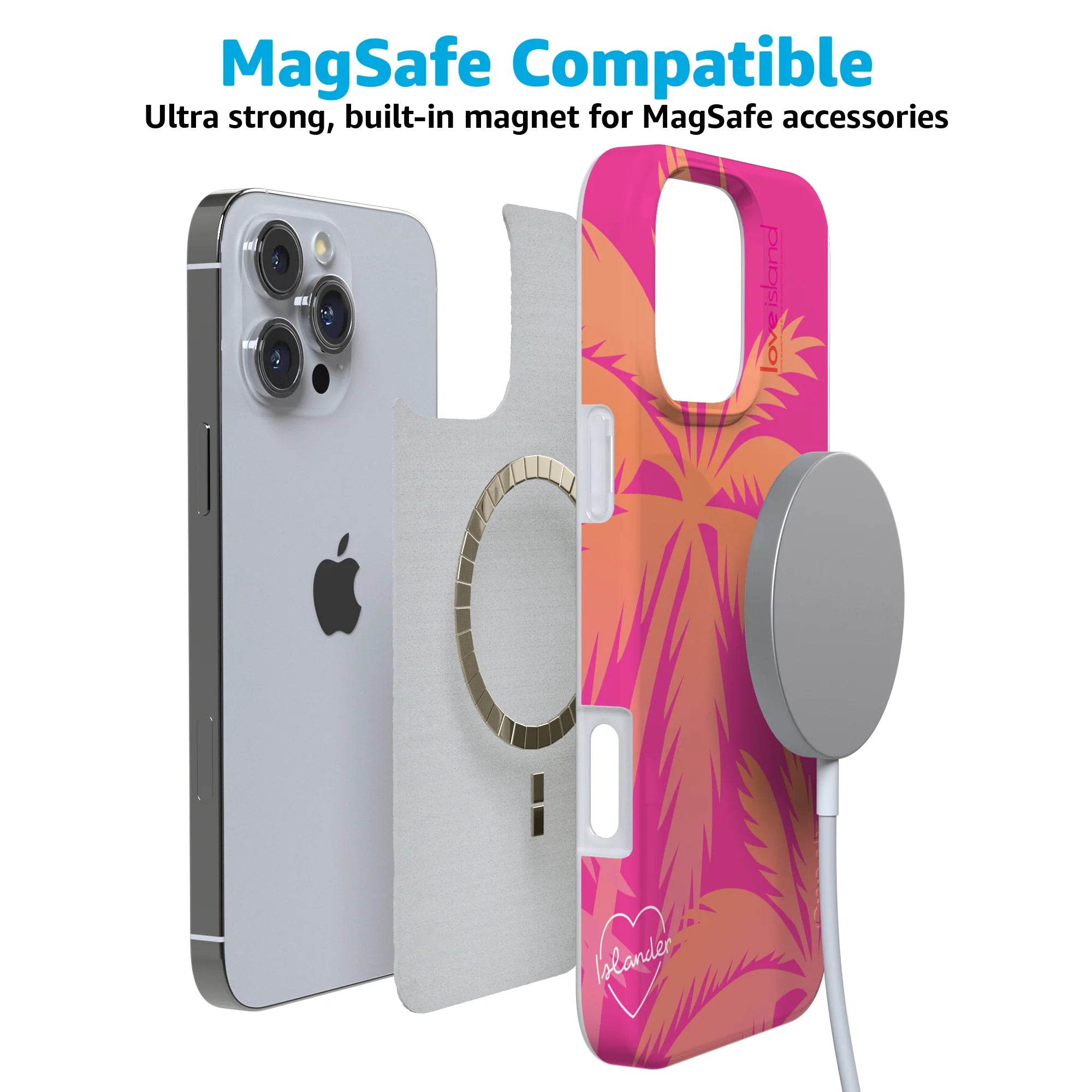 another style within 30 days of receiving your order.This case is giving villa vibes only. The Islander Love Island Case is your official ticket to feeling like a bombshell all summer long. Featuring bold pink and orange palm fronds and the signature “Islander” heart graphic, this ultra-protective case brings the heat while keeping your phone protected. Whether you're poolside, on a rooftop, or just manifesting your next recoupling, this case is the perfect blend of fun, flirty, and functional. Fully licensed Love Island merch, ready to graft its way into your rotation.