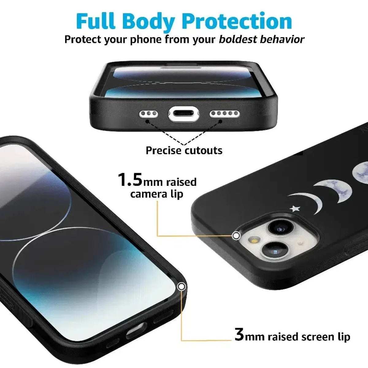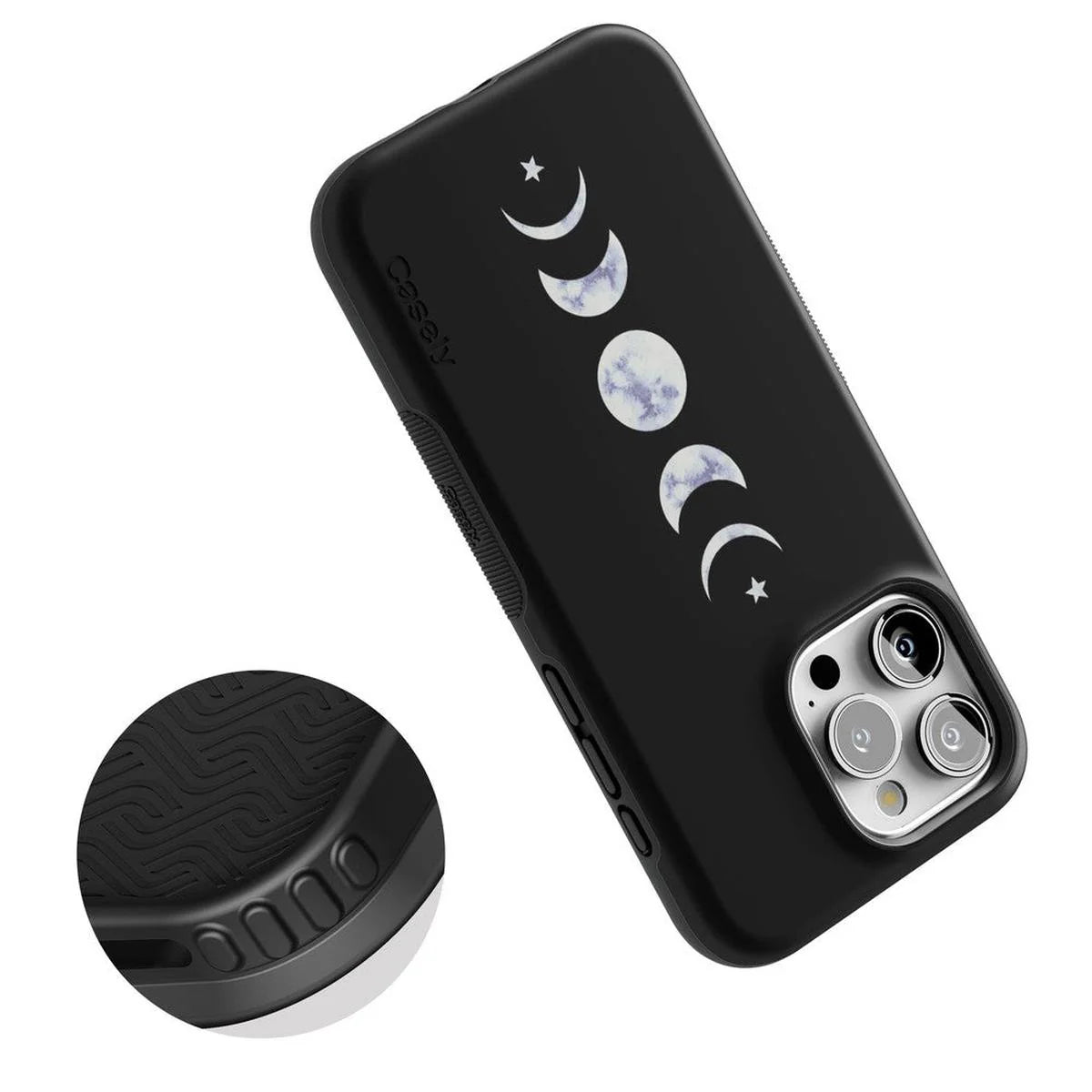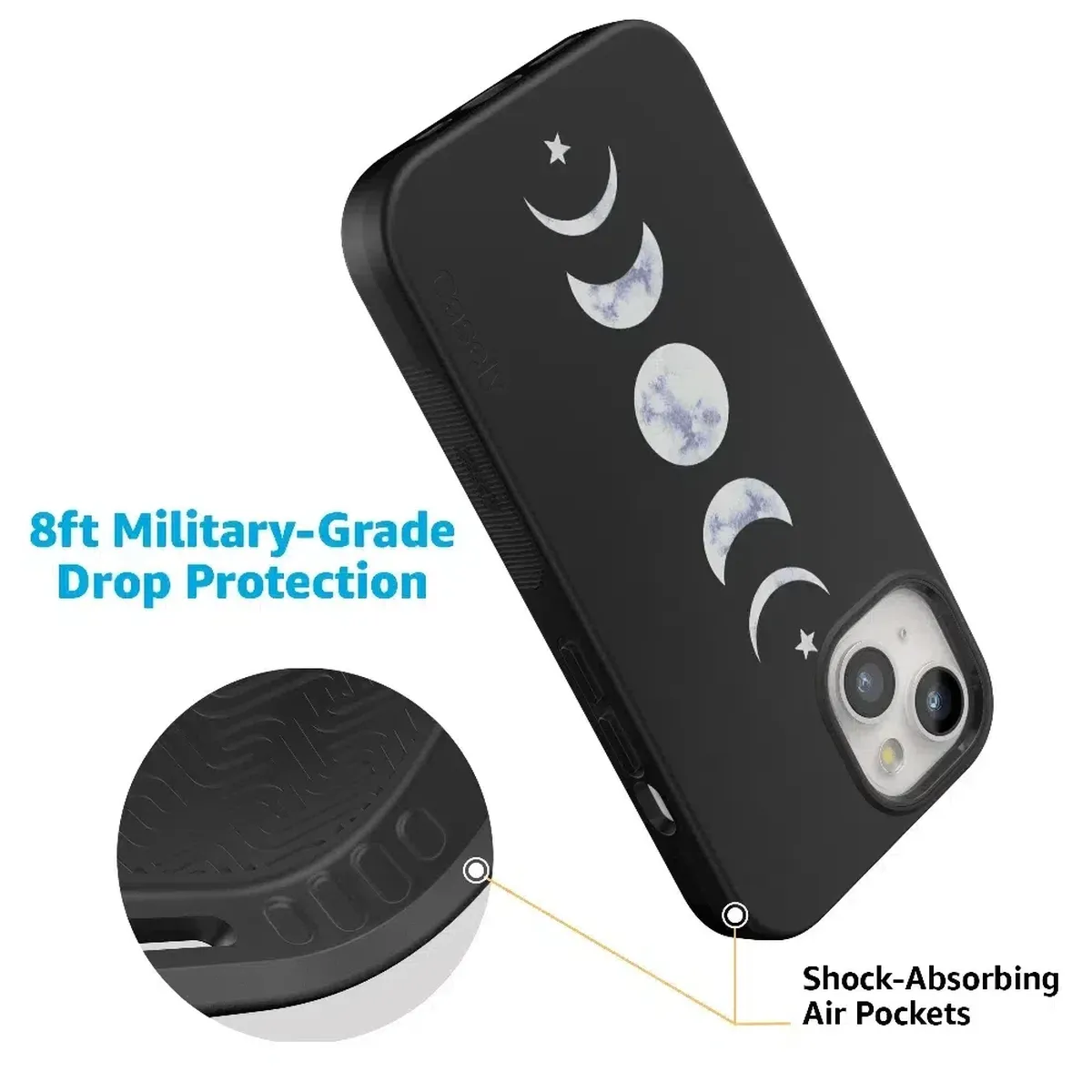 another style within 30 days of receiving your order.We all go through our phases, even the moon. The It’s Just a Phase | Marble Moon Case features a 5-phase luminous moon design to light up your life and your phone. The polycarbonate layers engineered into the design absorb shock and minimize impact should any falls occur. In addition, it offers raised edges of 1-3mm to keep your screen and camera away from any potential scratches. Your usability has never been better than it will be with the It’s Just a Phase | Marble Moon Case with embossed buttons that allow for a superior response. This limited-edition model’s custom compatibility keeps your iPhone supremely safe with a secure grip. It takes security a step further with its gorgeous, white marble tone moon phase illustration to keep things celestial and bright. Your phone safety and security don’t have to mean compromising your style with the It’s Just a Phase | Marble Moon Case by Casely.