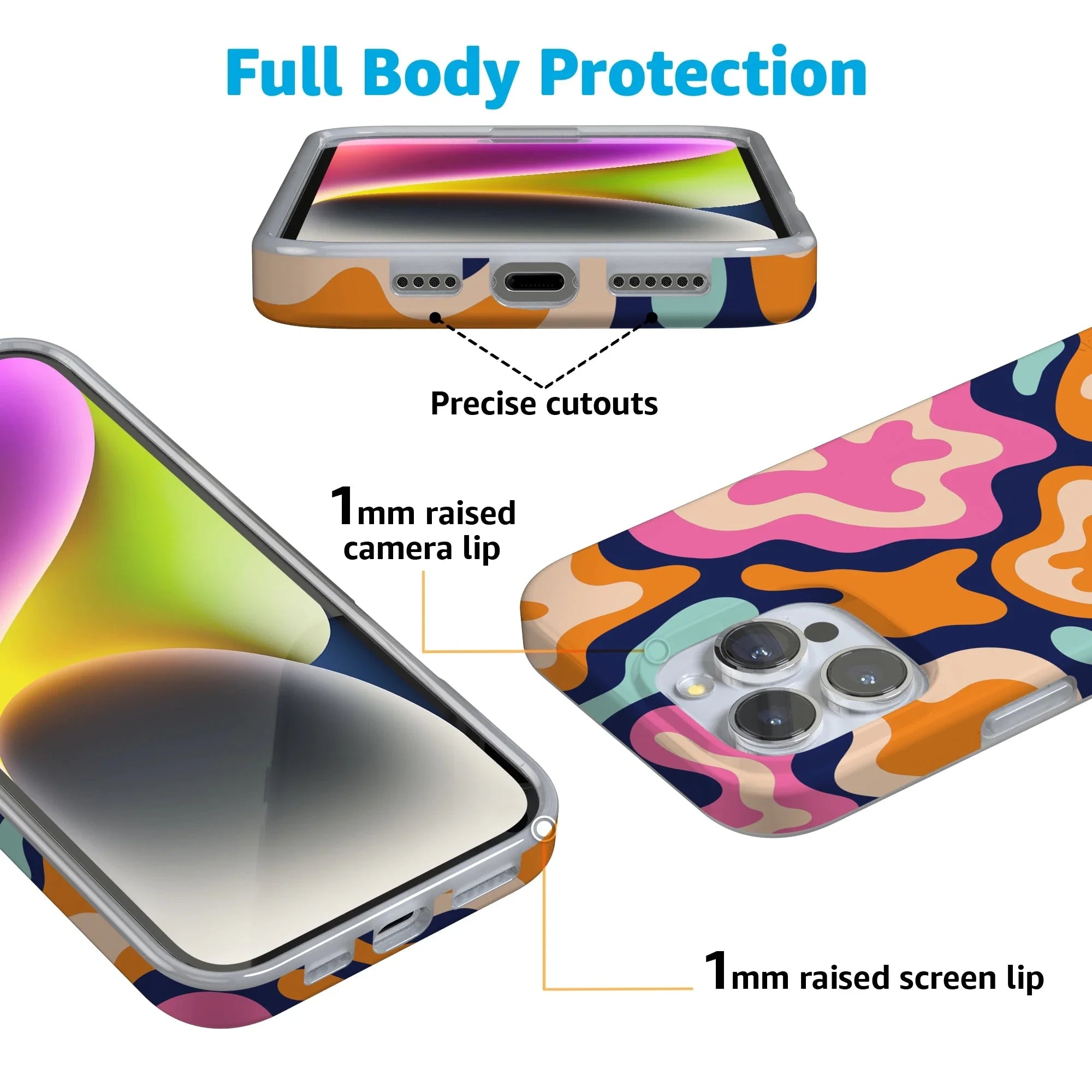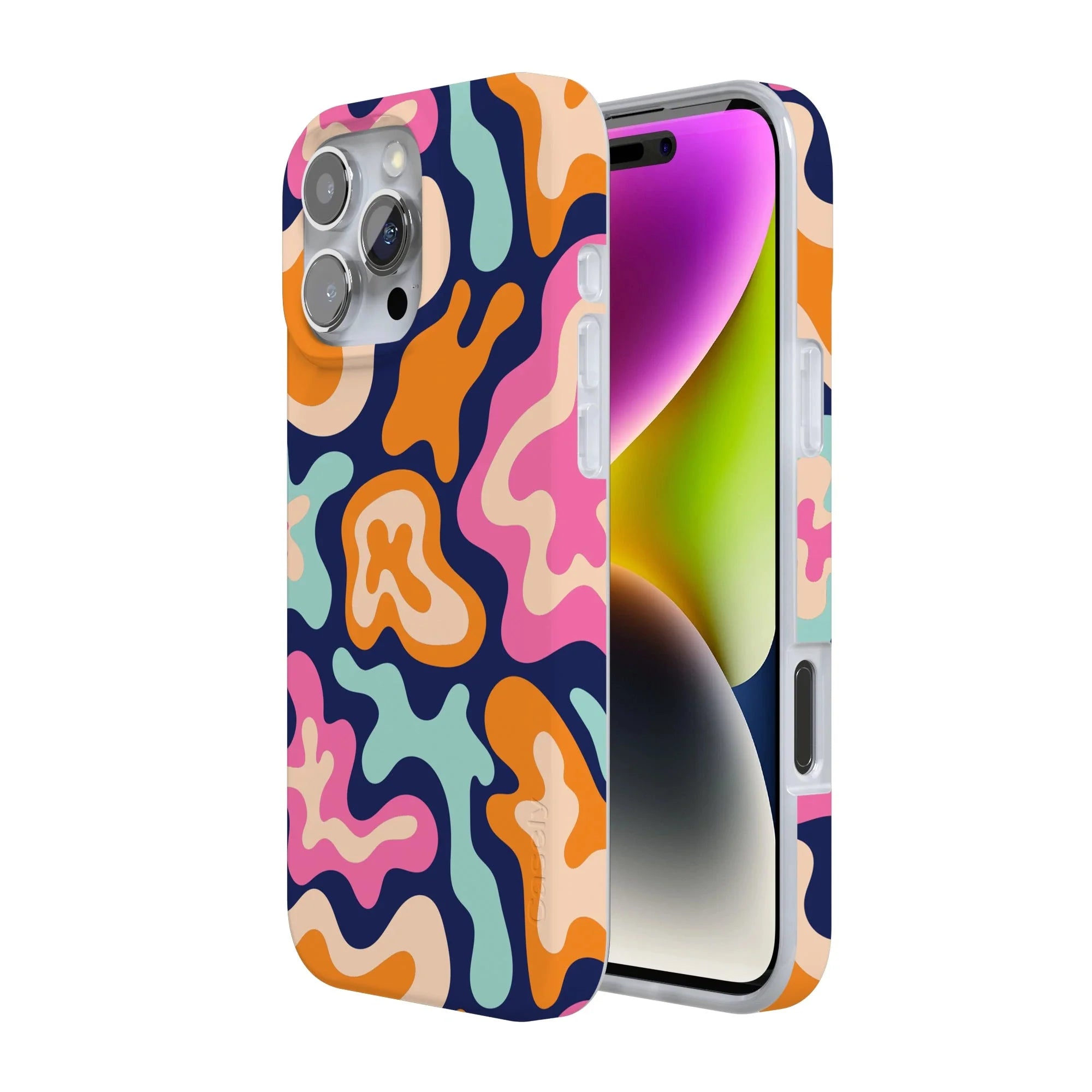 another style within 30 days of receiving your order.It's time to get funky, wild thing! There are few phone case designs as psychedelic and free-spirited as this one. Check out those groovy blues, oranges, and pinks spilling into cool navy organic shapes! It's interesting without being too over the top. Simply put: Midnight Color Splash, with its abstract retro style, is fun, serving color and a bold statement.