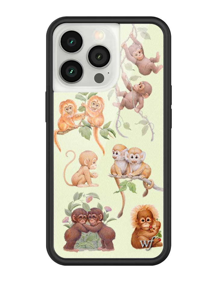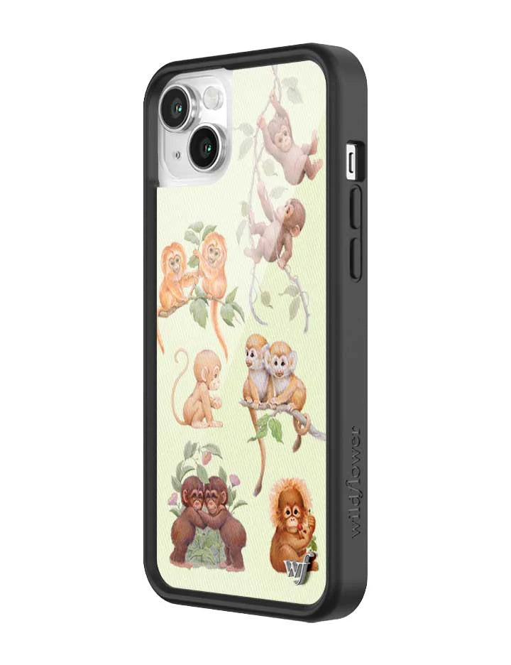 another style within 30 days of receiving your order.Monkey see, monkey do — the whole gang’s here just hangin’ out! Our Monkey Biz iPhone case is a cheeky celebration of curiosity and cuteness, featuring adorable monkeys swinging from vines and cuddling in pairs. Set against soft jungle greens and finished with fuzzy little faces, this case is full of mischief in the sweetest way.