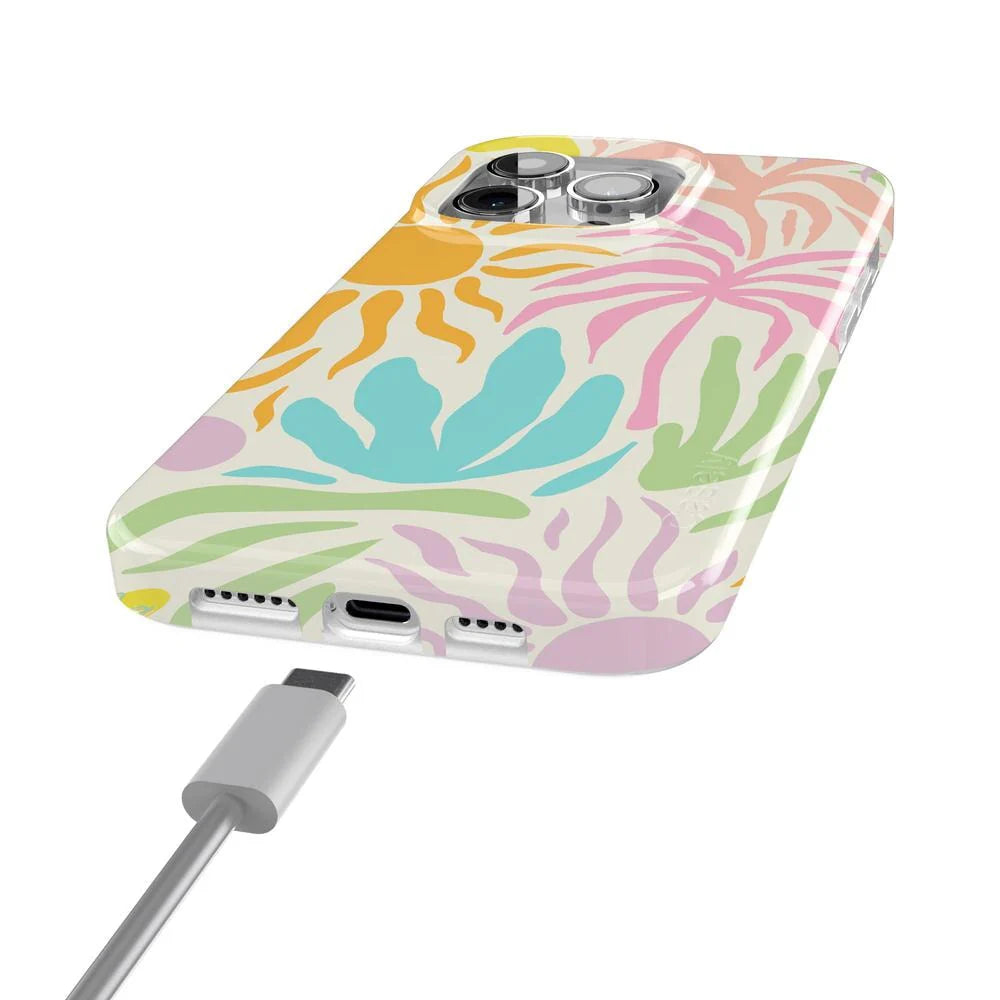 another style within 30 days of receiving your order.Step into your own personal Oasis with this vibrant phone case from the collab! Featuring bold, tropical florals and playful sunbursts in dreamy pastel hues, this design is the perfect escape from the everyday. Whether you're beachside or just bringing the vacation vibes to your daily routine, this case is a statement piece you won’t want to miss.