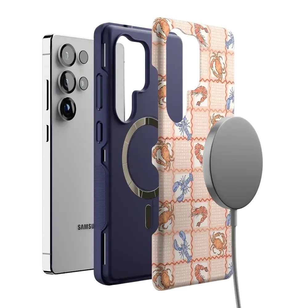 another style within 30 days of receiving your order.Claw your way into summer with the On the Cape | Coastal Summer Case. Featuring a nostalgic seafood motif of lobsters, crabs, and shells arranged in a vintage-inspired patchwork print, this phone case is a seaside classic with a playful twist. Whether you're digging into a clambake or catching sunset on the dunes, this durable, MagSafe®-compatible case brings Cape Cod vibes wherever you go. Designed for protection and style, it’s part of our limited-edition East Coast Summer Collection—your go-to accessory for coastal escapes.