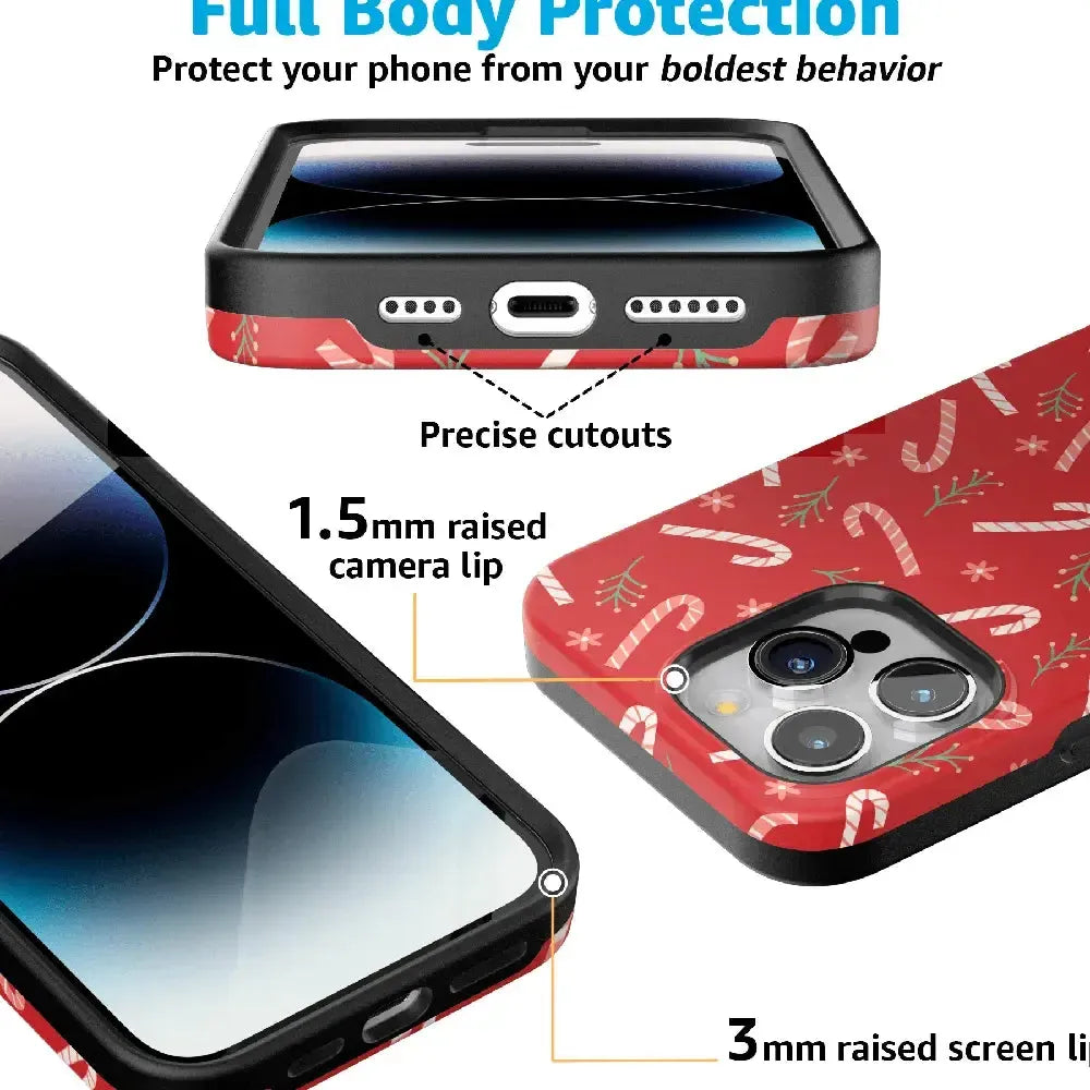The Peppermint Kiss Candy Cane Case is designed to offer more than just style – it provides durable protection against scratches and everyday bumps. Crafted from high-quality materials, this case is both lightweight and slim, making it comfortable to hold and easy to slip into a pocket or bag. Its festive design is sure to bring a smile to your face every time you reach for your phone.