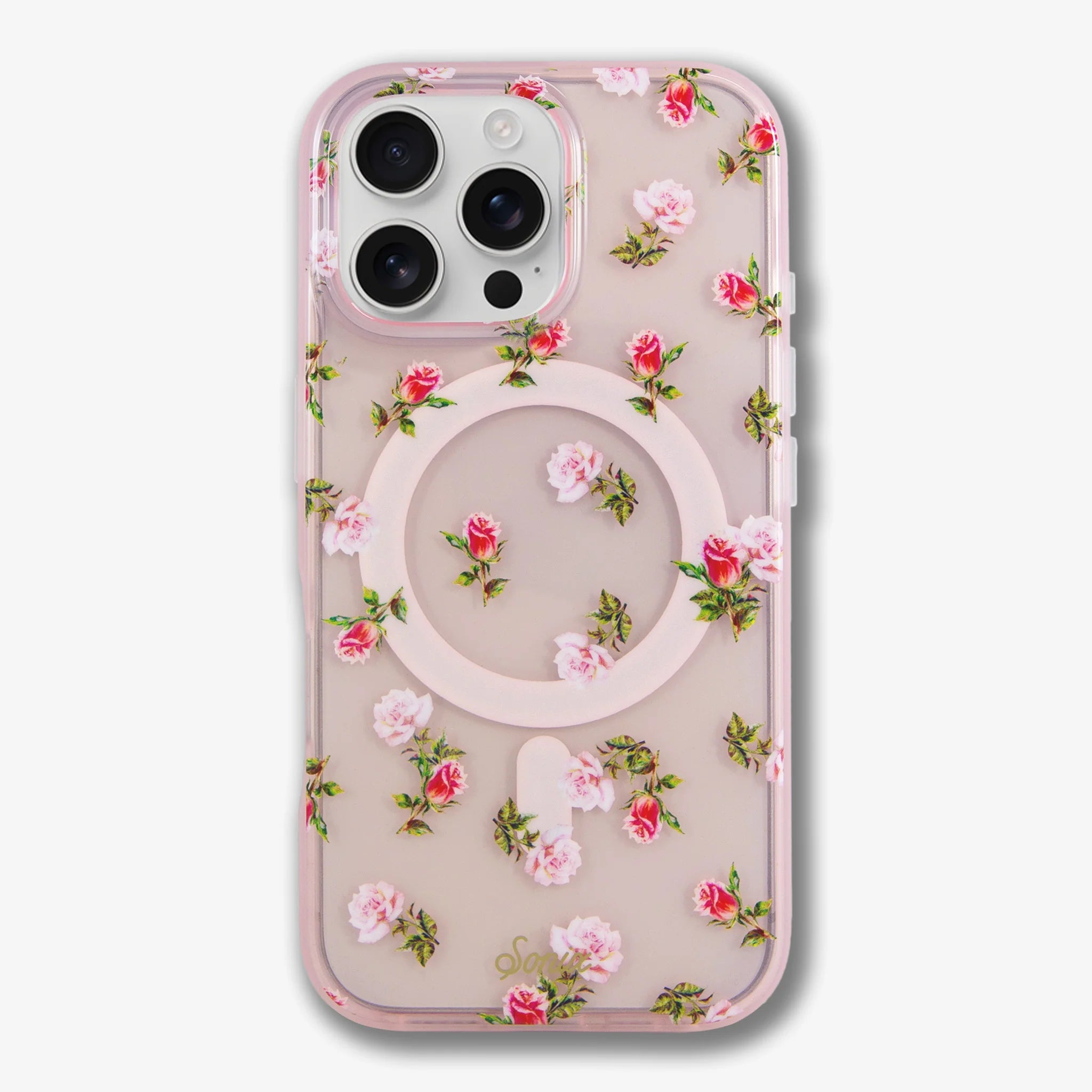 If roses are your love language, then this phone case is for you. She’s pretty, protective, and oh-so romantic! The Roses are Red MagSafe® compatible iPhone case features a gorgeous, realistic watercolored rose print on a sheer, clear rose pink background. The romantic flowers are the classic symbol of love and passion. Embrace the law of attraction and add some romance to your daily carry with this ravishing, rosy case for your new iPhone.