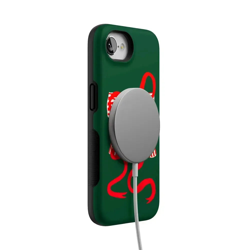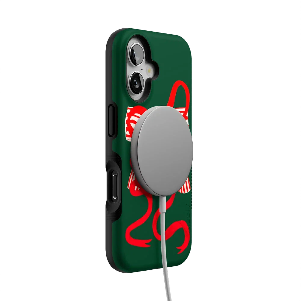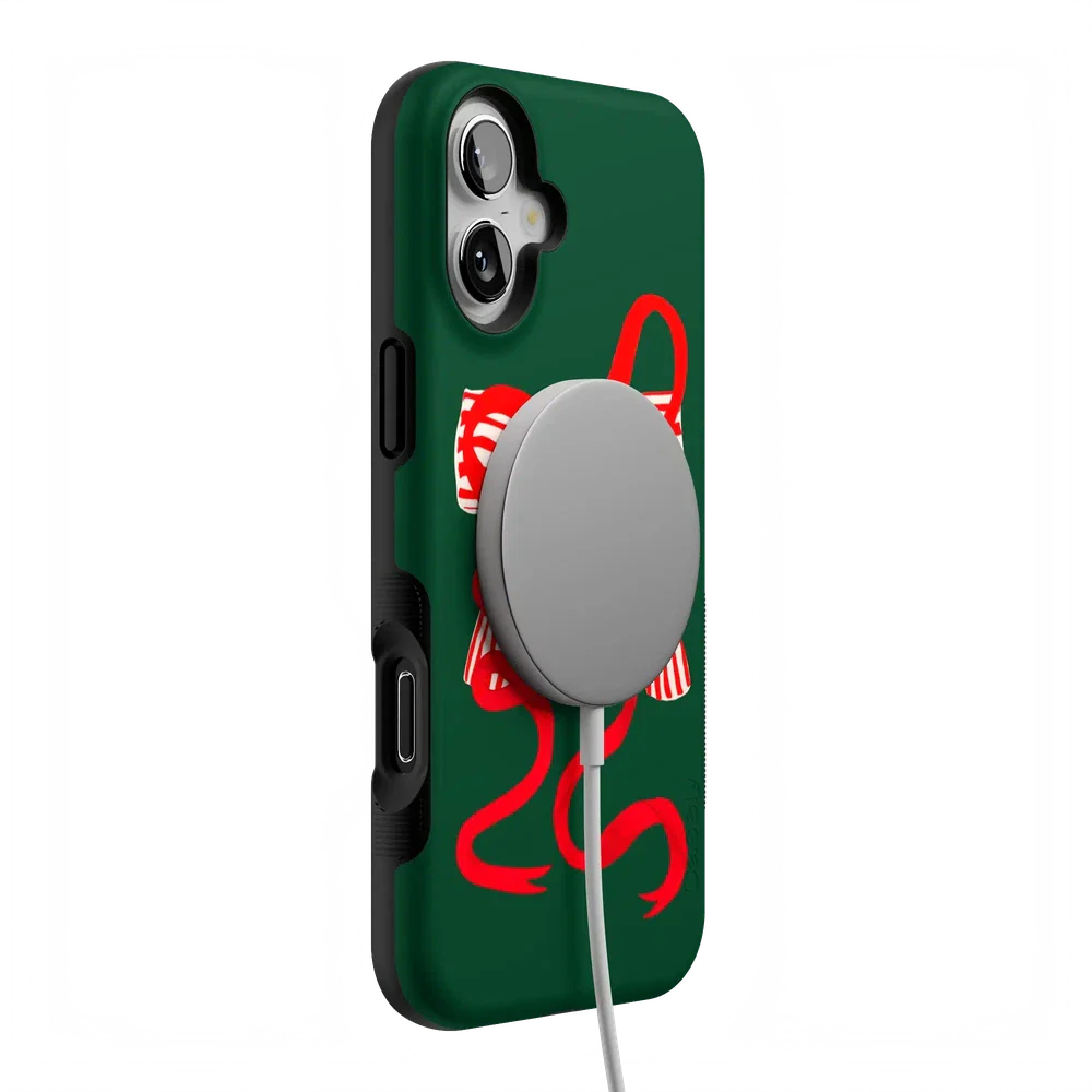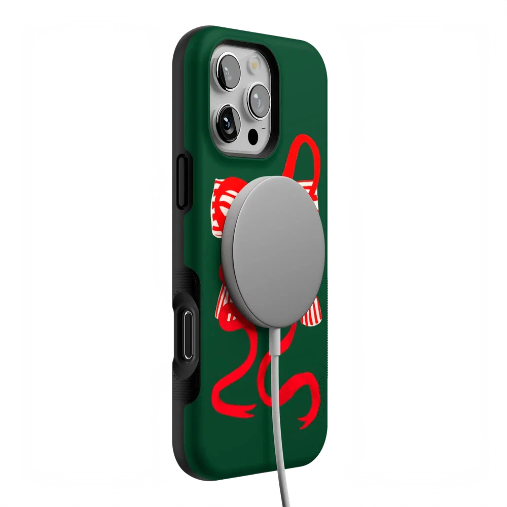 another style within 30 days of receiving your order.Deck your phone out in holiday cheer with the Santa's Favorite Holiday Bow Case, a standout piece from our holiday collection. This case showcases a bold, red holiday bow with a charming striped detail, set against a deep green background that captures the essence of the season. Designed to fit Google Pixel, Samsung Galaxy, and iPhone models, it’s the ideal way to celebrate the holidays in style while keeping your device safe.