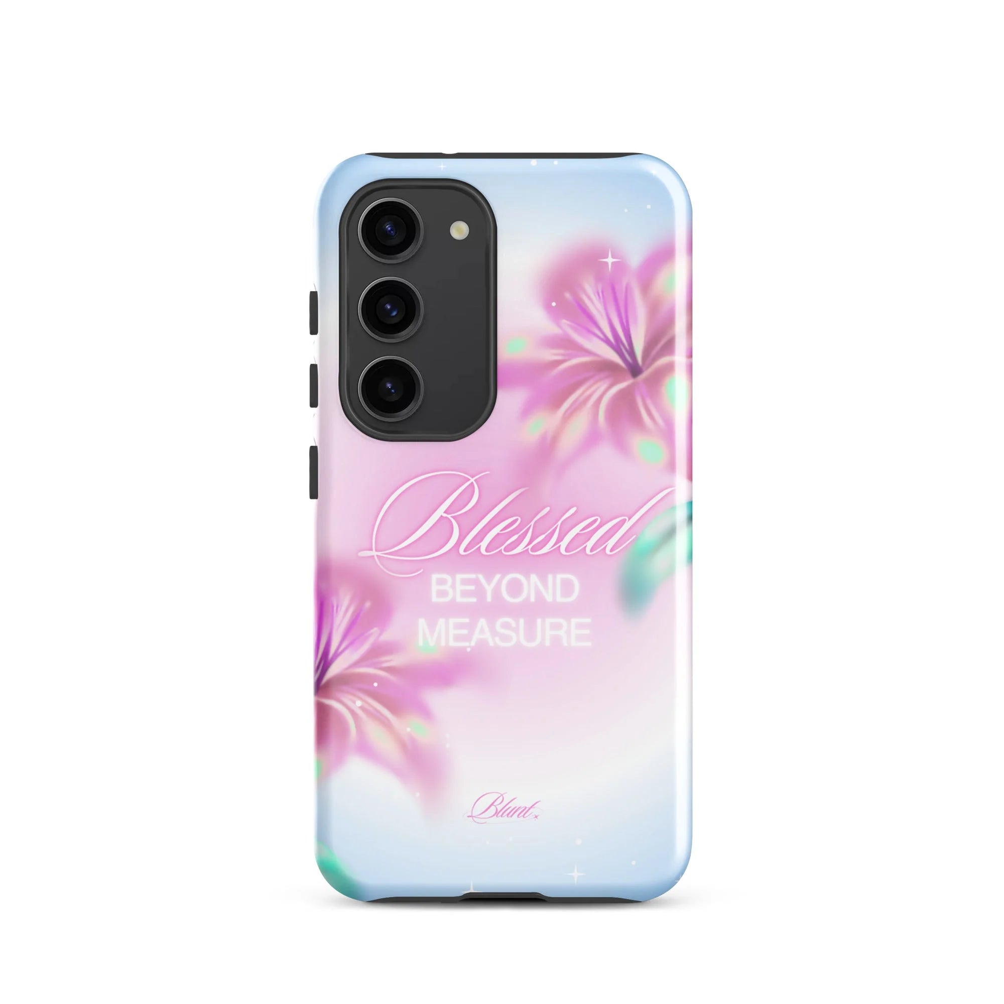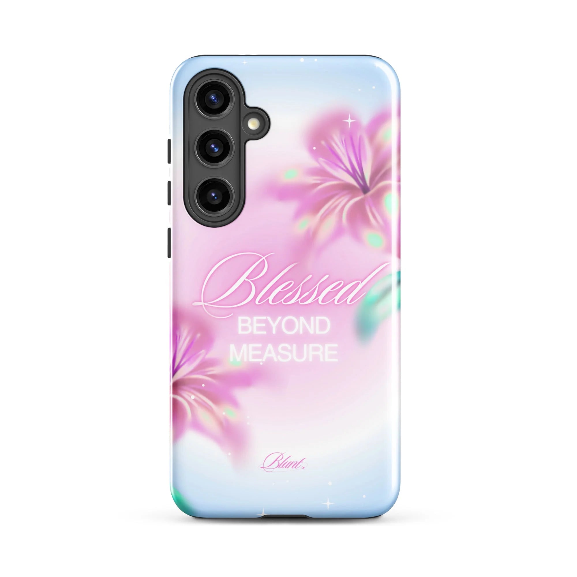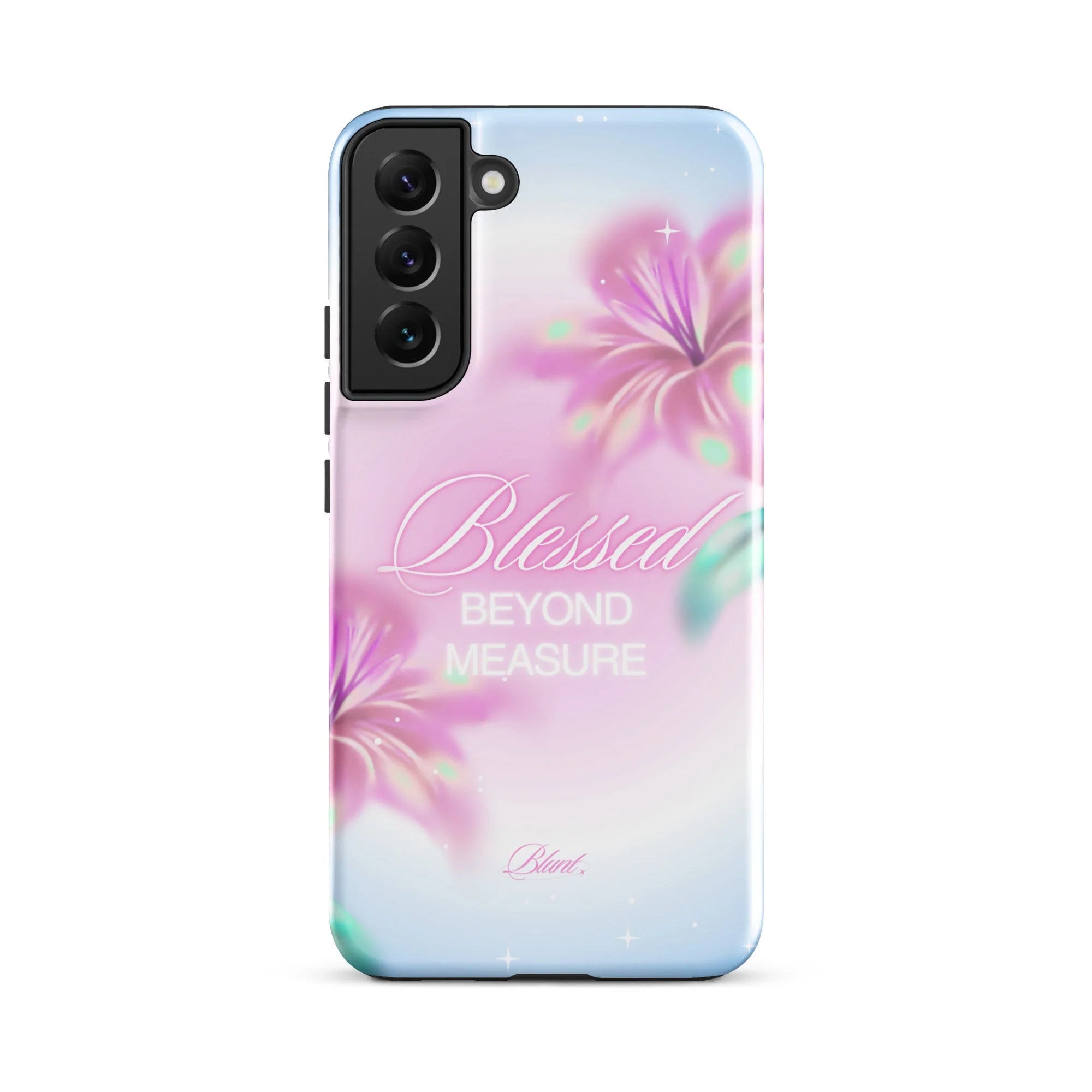 another style within 30 days of receiving your order.Meet your new favorite fashion tech accessory: the She's Blessed Samsung Galaxy Phone Case. Designed to protect your phone with a slim, lightweight feel and a high-gloss finish. Keep your phone safe from drops while turning heads wherever you go