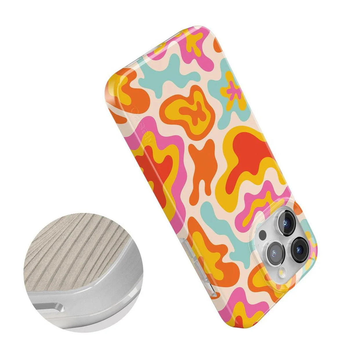 another style within 30 days of receiving your order.Get your groove on with the Tropical Color Splash Abstract Retro Case. The far out, psychedelic squiggles of pink, yellow, blue, and red wave in and wave out when you stare at the case. Take your mind to a whole new dimension with this retro cover. Have a friend who’s obsessed with ‘60s vibes, or have a parent who can’t kick ‘60s nostalgia? The Abstract Retro is the perfect gift for the psychedelic-lover in your life.