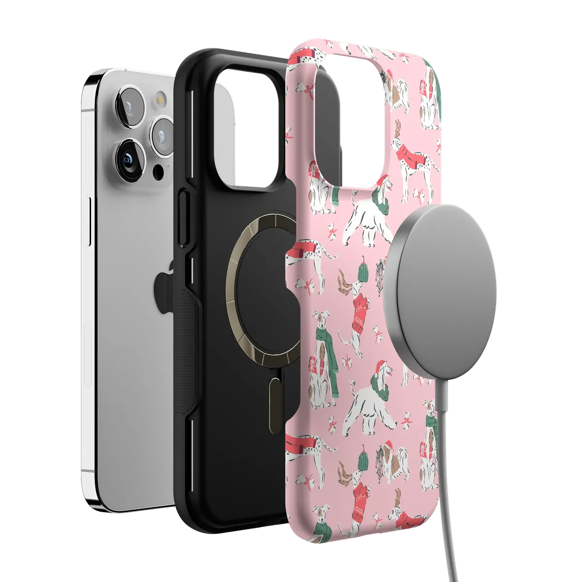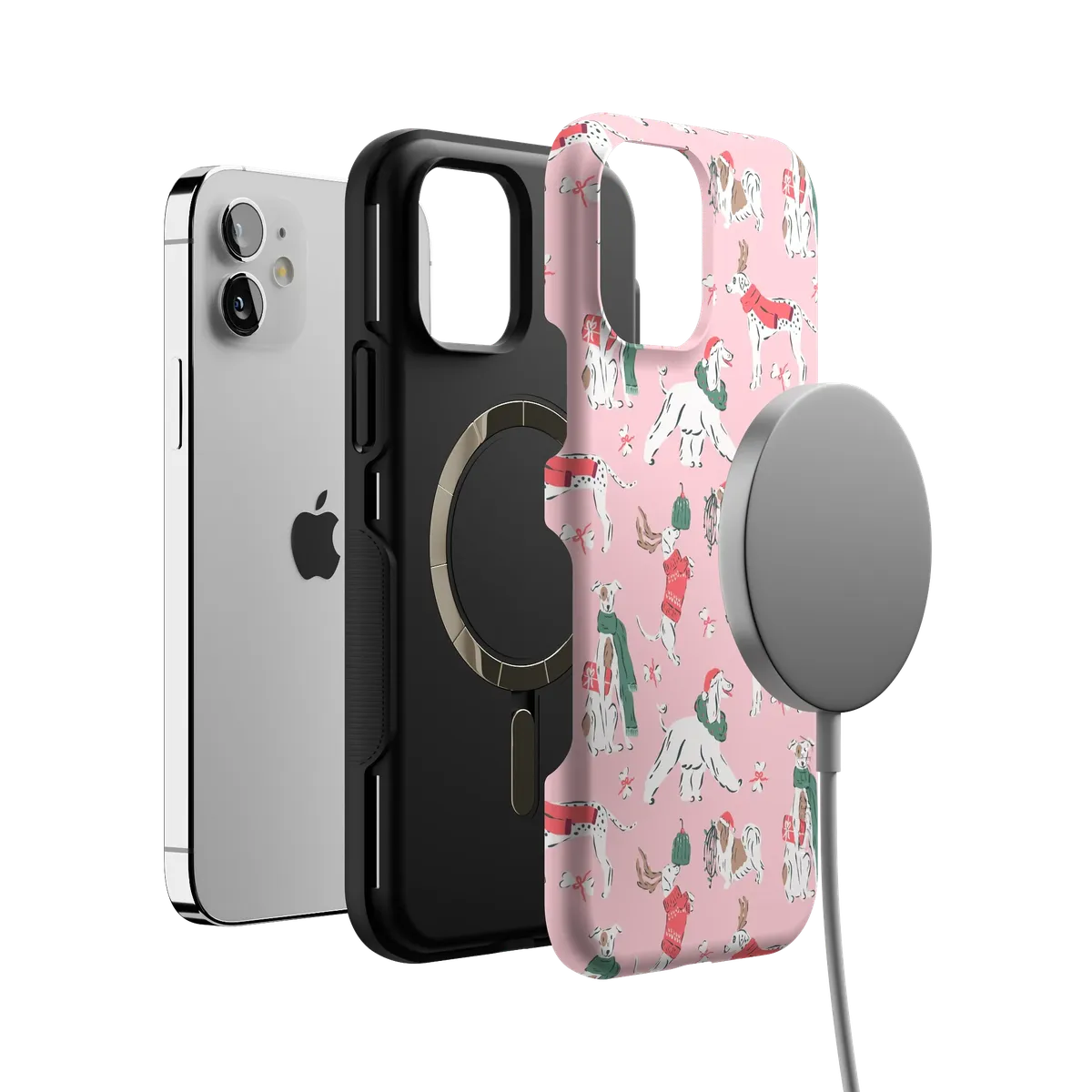 another style within 30 days of receiving your order.Dogs make every season better — especially this one. The Winter Woofs Case celebrates your favorite furry friends decked out in holiday scarves and cheer. Built with MagSafe-compatible magnets and reliable drop protection, it’s made for cozy walks and coffee runs alike.