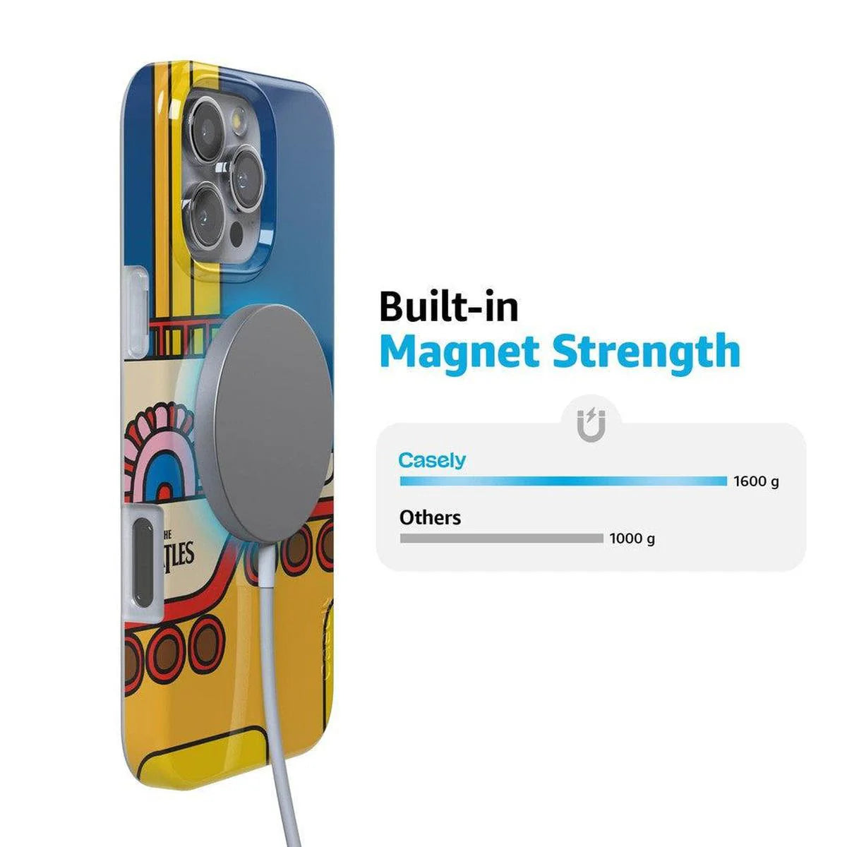 another style within 30 days of receiving your order.Dive into a sea of style with the new Beatles x Casely Yellow Submarine phone case. The iconic imagery from The Fab Four provides some nautical nostalgia and pays tribute to the rock & roll legends. Made for a variety of iPhone sizes, this limited edition cover is sure to keep your phone safe. The hard shell goes all the way around the edges of your phone for complete protection from scratches and drops.